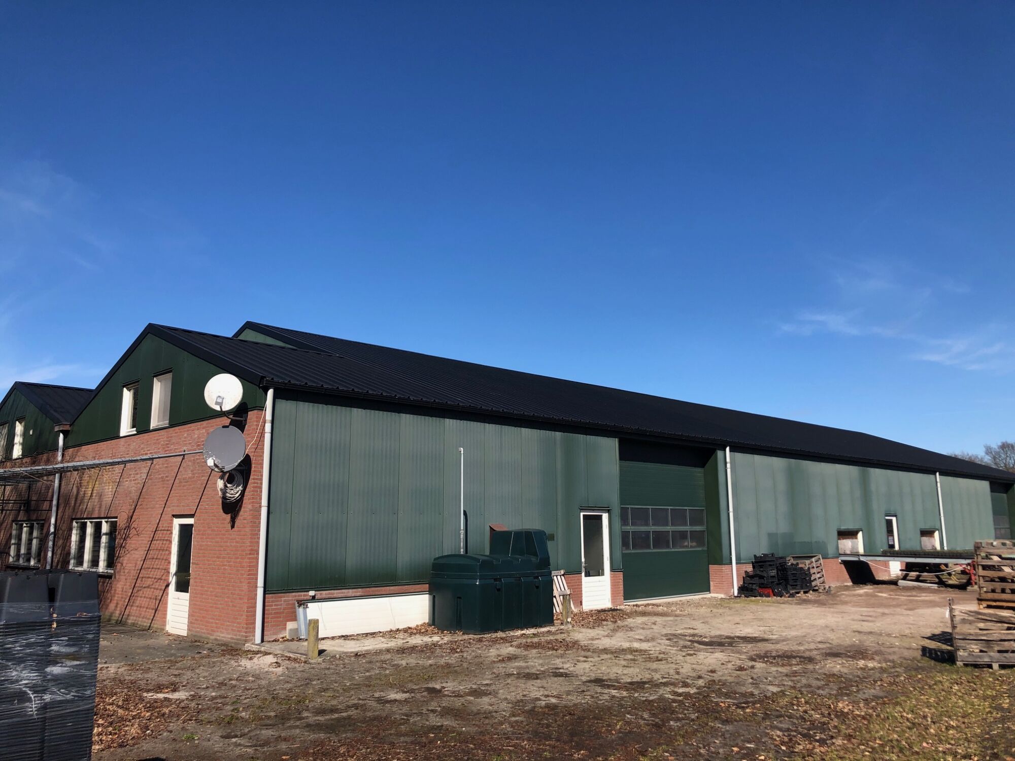 Royale bedrijfsloods en containerveld met bijbehorende voorzieningen, gelegen in het buitengebied van Sterksel.