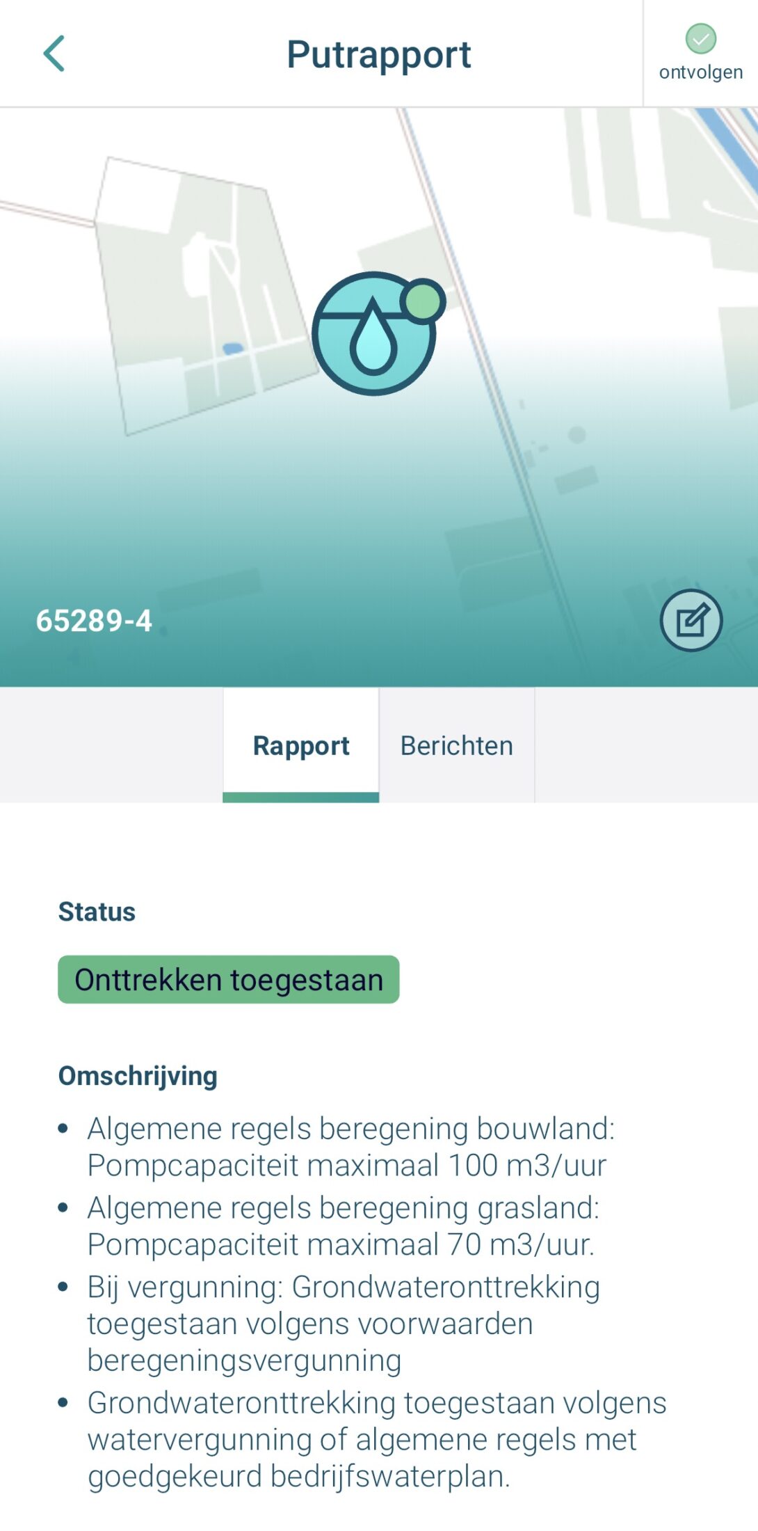 – Op het gekochte bevindt zich één beregeningsput, welke geregistreerd is middels een melding (65289). Verkoper zal zijn medewerking verlenen om de registratie van de beregeningsput over te dragen naar koper.