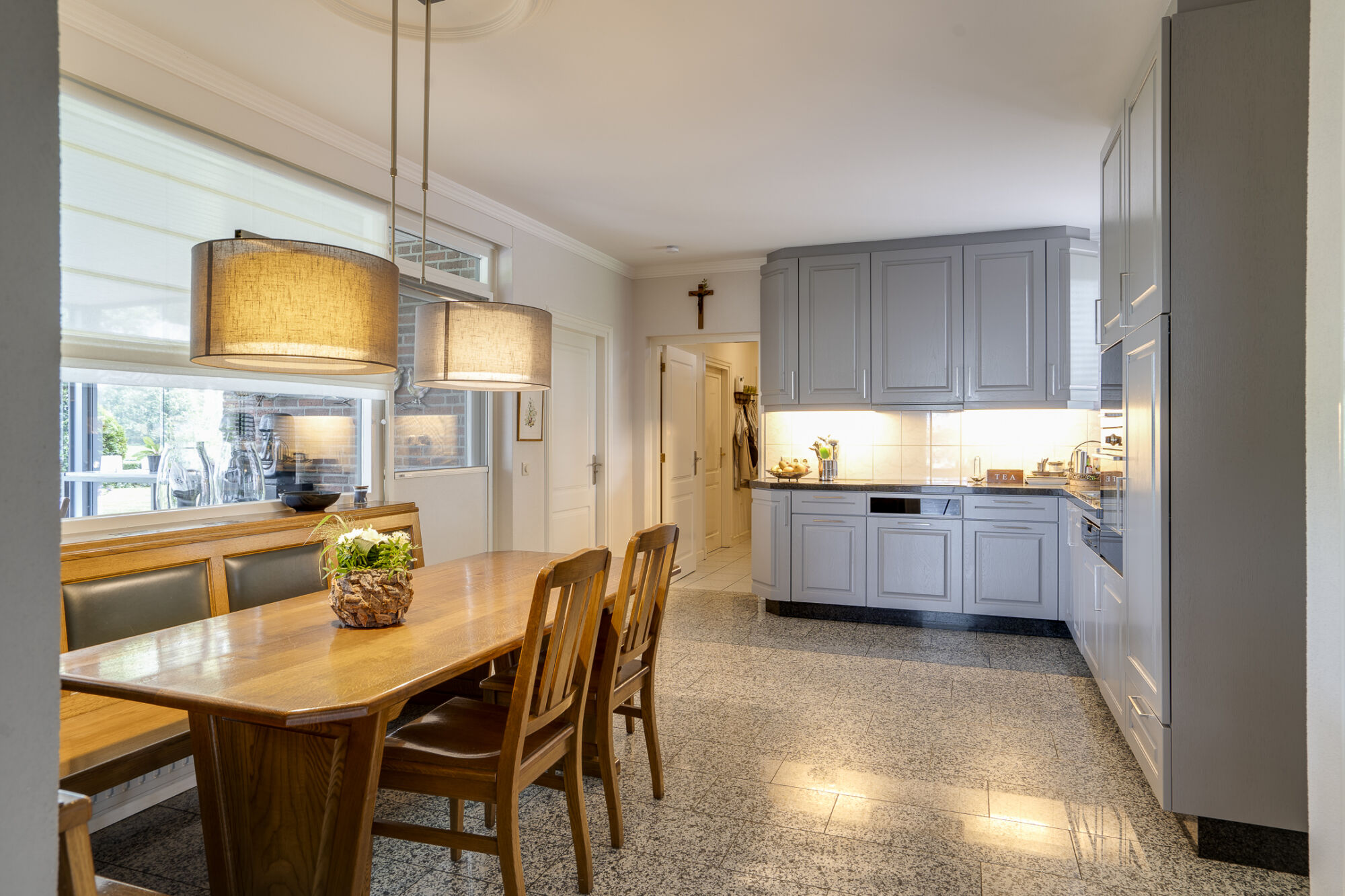 Tevens zijn vanuit de keuken de extra “tv”kamer, royale stahoge kelder en het kantoor bereikbaar.