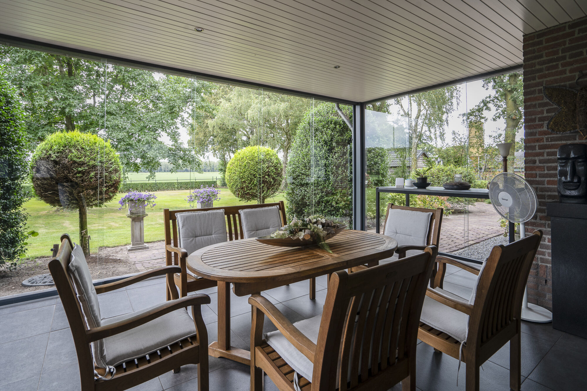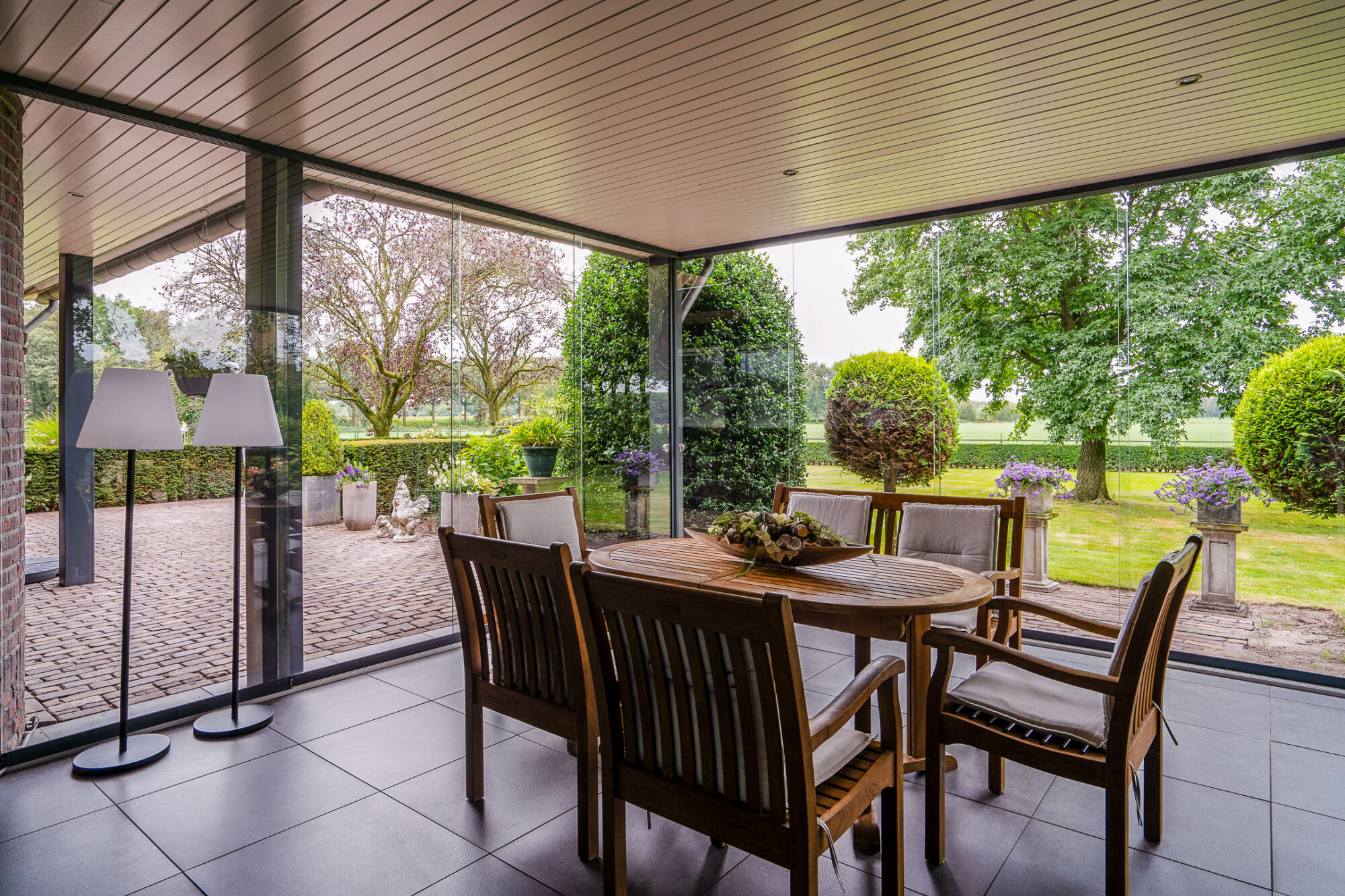 Aangrenzend aan de keuken is de tuinkamer aanwezig waar u tot in de late avonduren met vrienden en familie culinair kunt genieten van de ondergaande zon maar ook van het wild dat in de schemering te voorschijn komt.