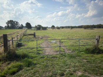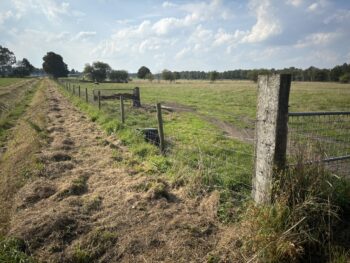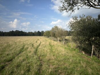 – Het perceel is geheel omheind middels weidepalen met schapengaas en prikkeldraad.