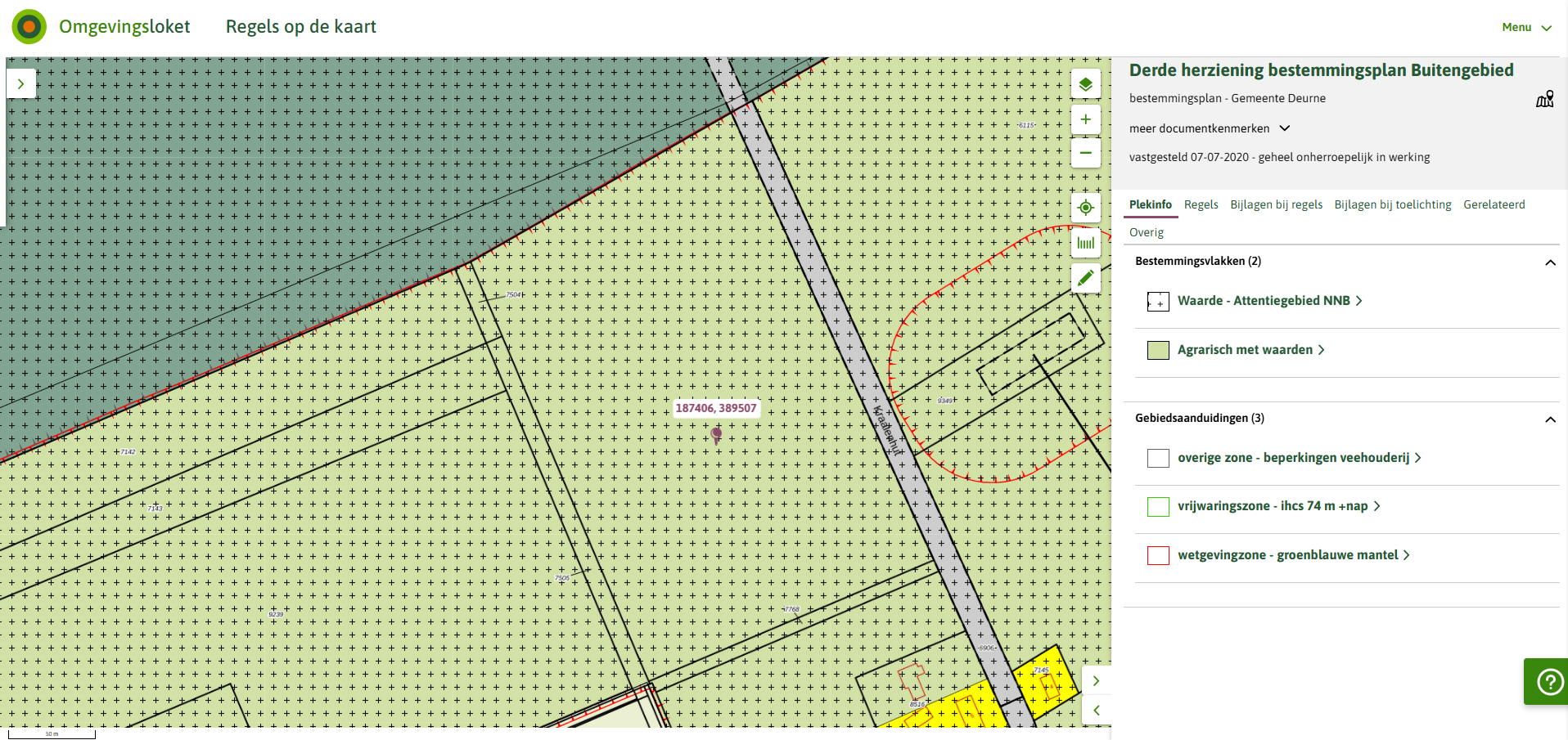 Het object is gelegen in het bestemmingsplan “Derde herziening bestemmingsplan Buitengebied” en is vastgesteld door de Raad van de gemeente Deurne op 7 juli 2020