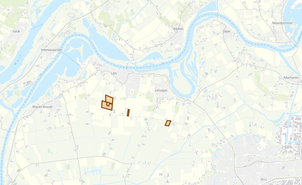 In het buitengebied van Lith/Lithoijen bieden wij u vier percelen cultuurgrond per inschrijving aan. Het betreffen twee percelen gelegen aan de Spapenhoefstraat en twee percelen aan de Tiendweg met een totale oppervlakte van 24,41.80 ha.
