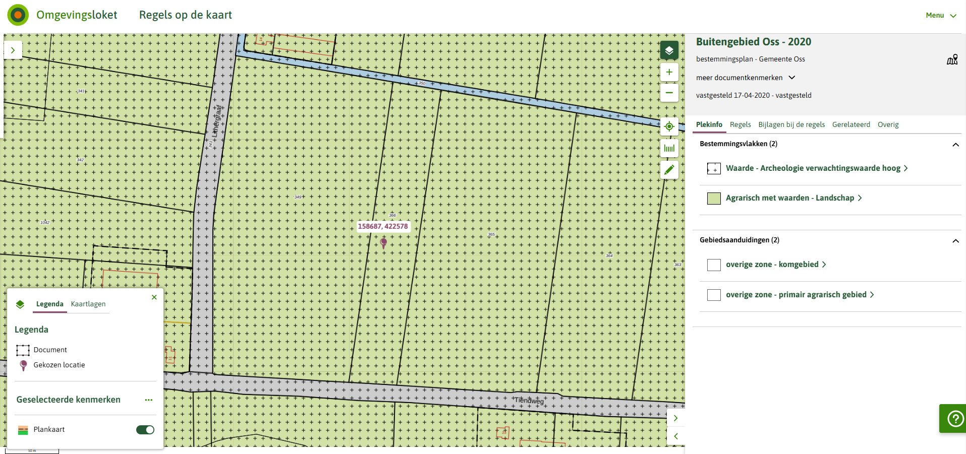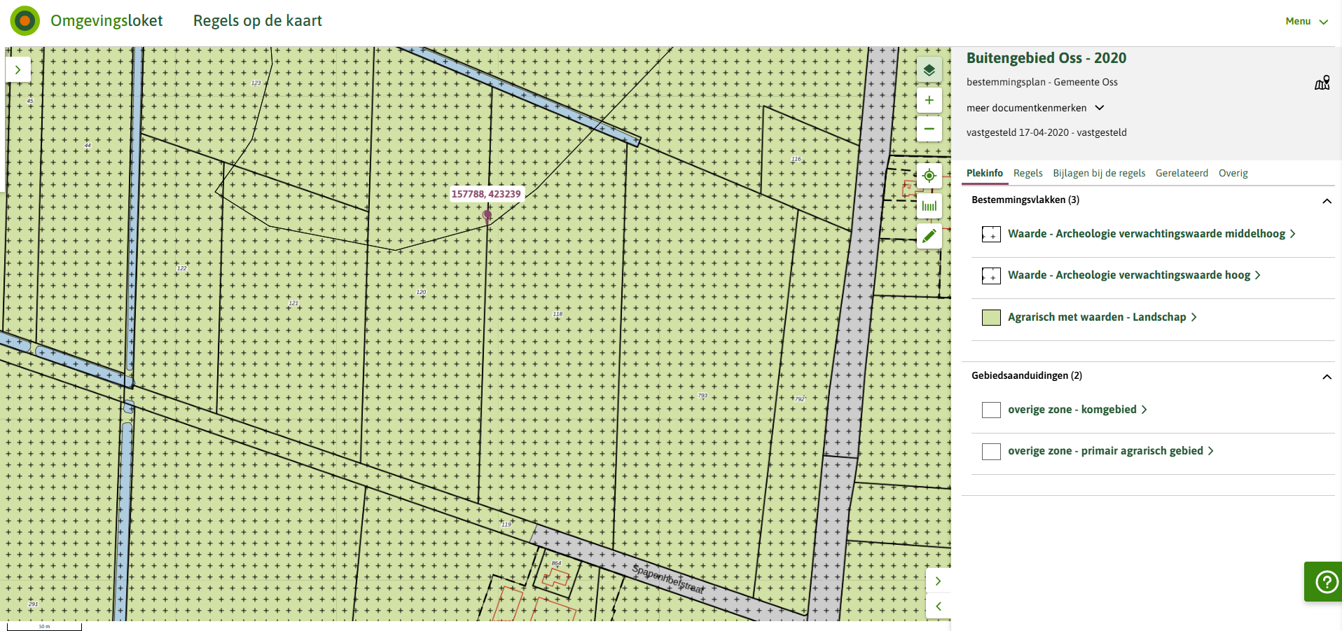 Het perceel “Koop II” is gelegen in het bestemmingsplan “Buitengebied Oss – 2020” en is vastgesteld door de Raad van de gemeente Oss op 17 april 2020