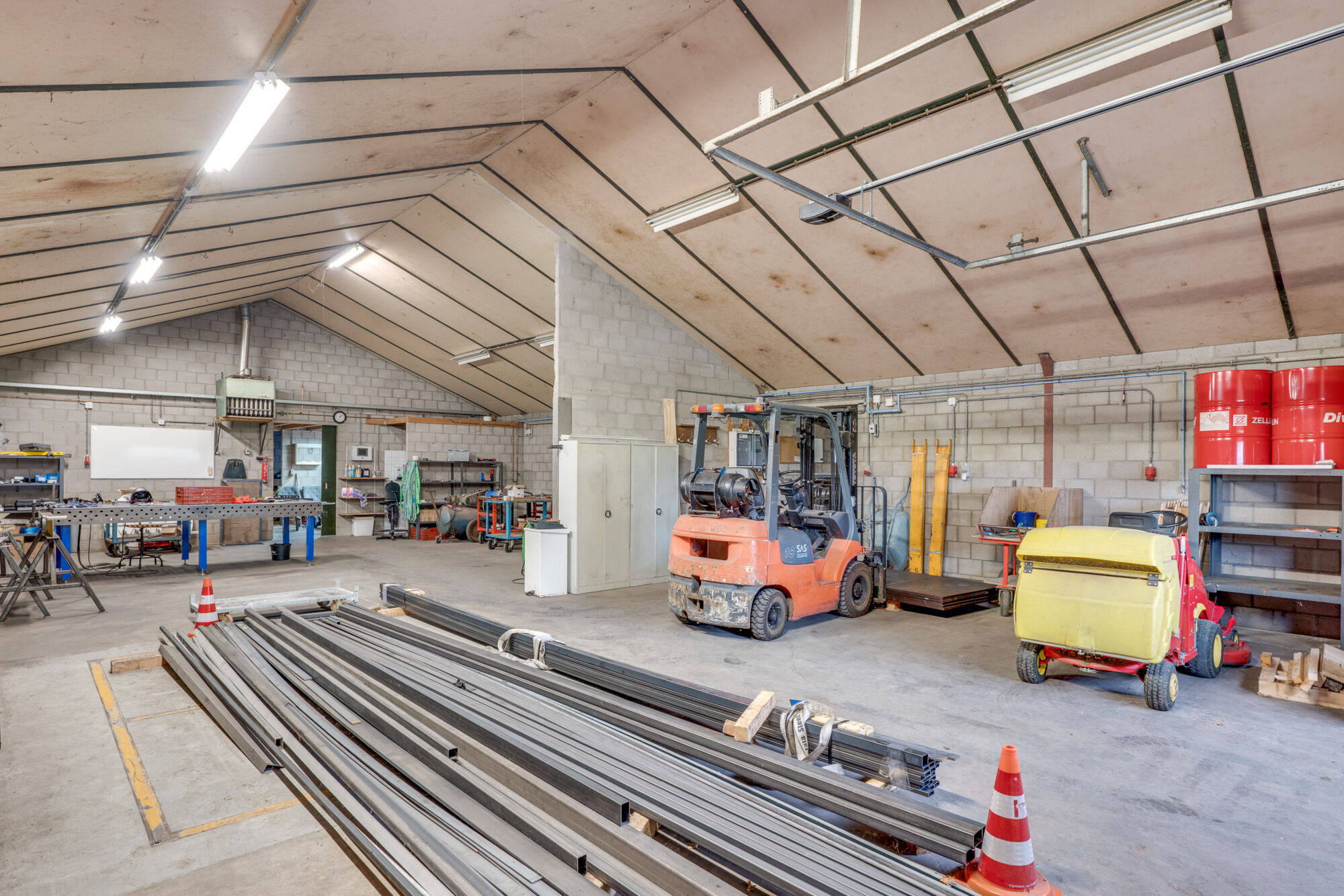 • Stalen spanten, vrijdragend / diverse werk- en opslagruimtes.