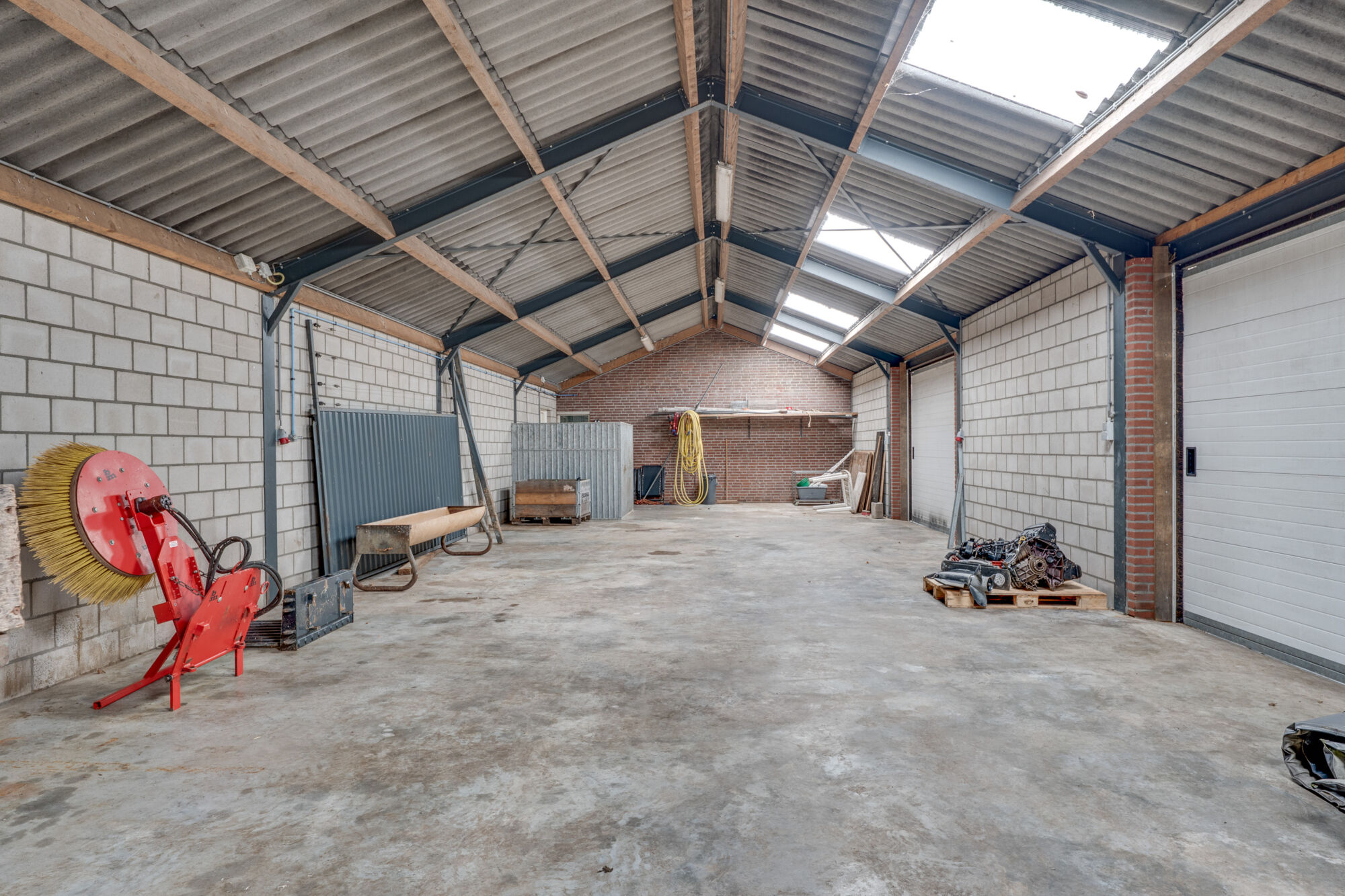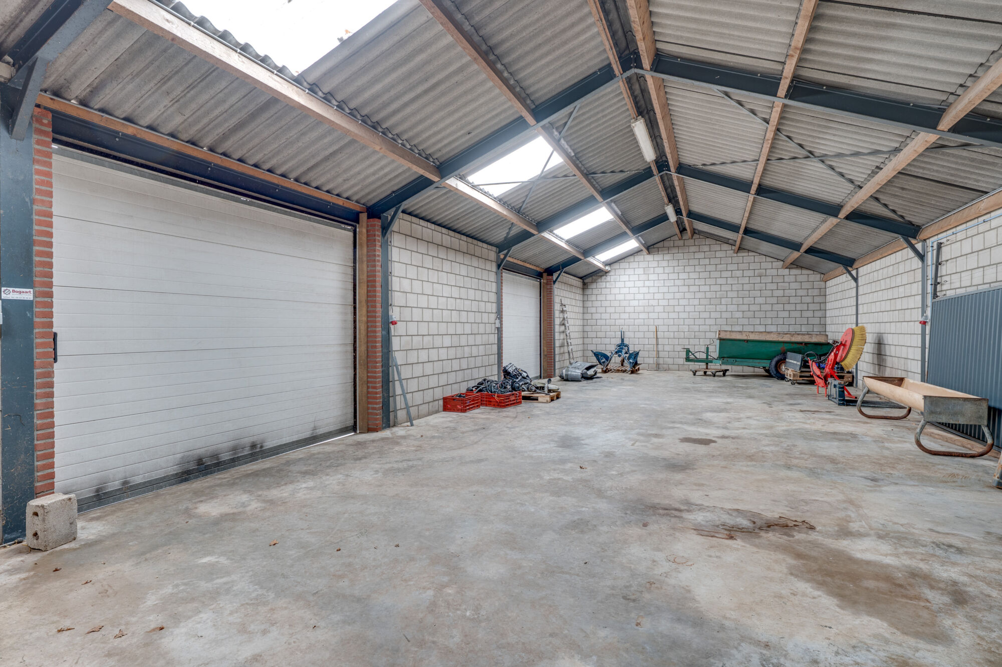 • Roldeuren: 1 elektrische roldeur van 3 x 3 meter en 1 elektrische roldeur van 2,5 x 2,3 meter