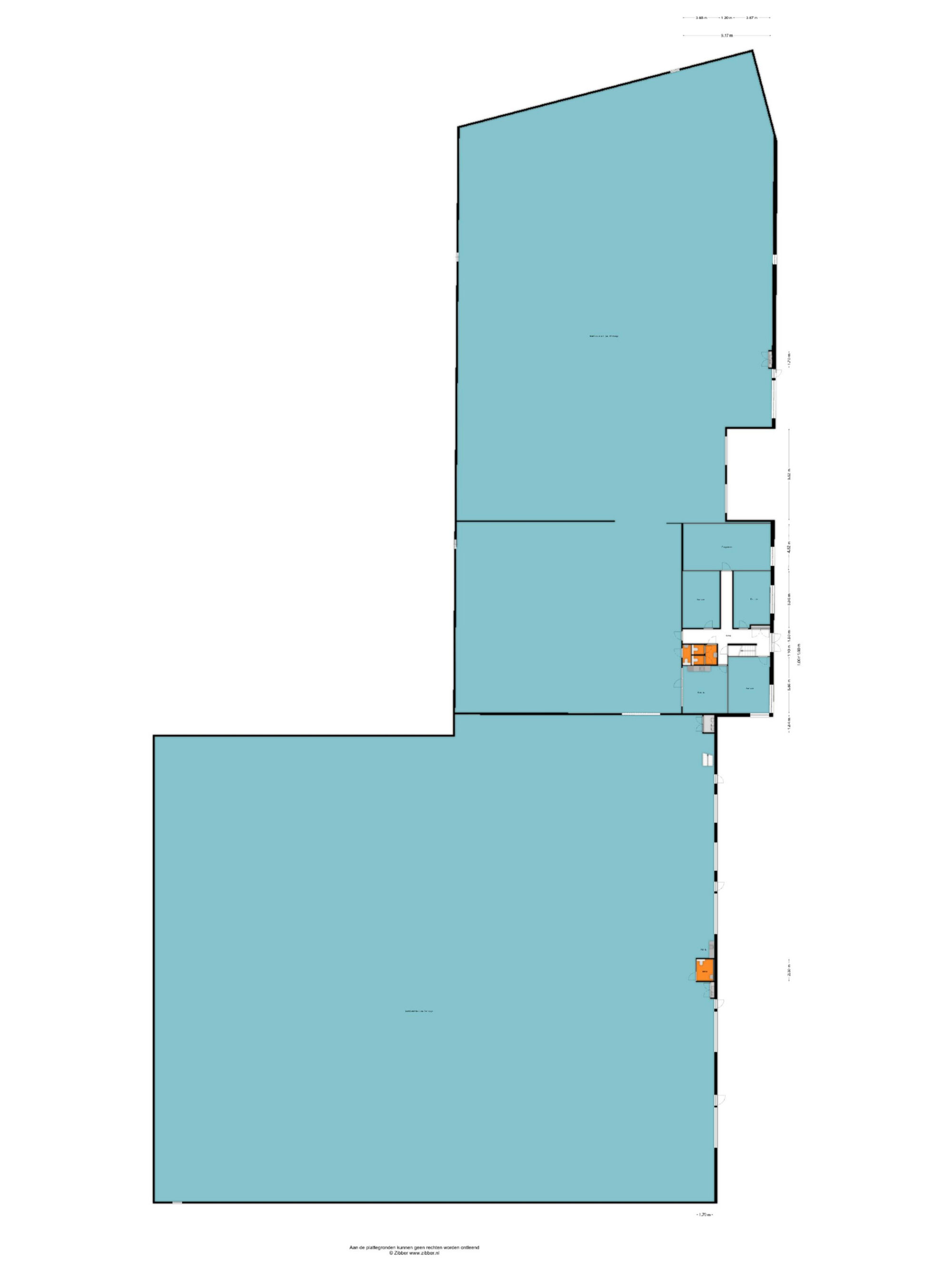 Bedrijfsruimte 2: ca. 2.887m² (ca. 7m vrije hoogte, 2x loading dock) / ca. 59,00m x 48,90m.