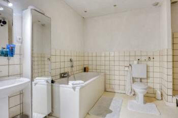 De eerste verdieping bevat een royale woonkamer, badkamer, en een grote woonkeuken. De combinatie van een open leefruimte en functionele voorzieningen maakt deze verdieping een fijne plek om te wonen of op een andere manier in te richten.