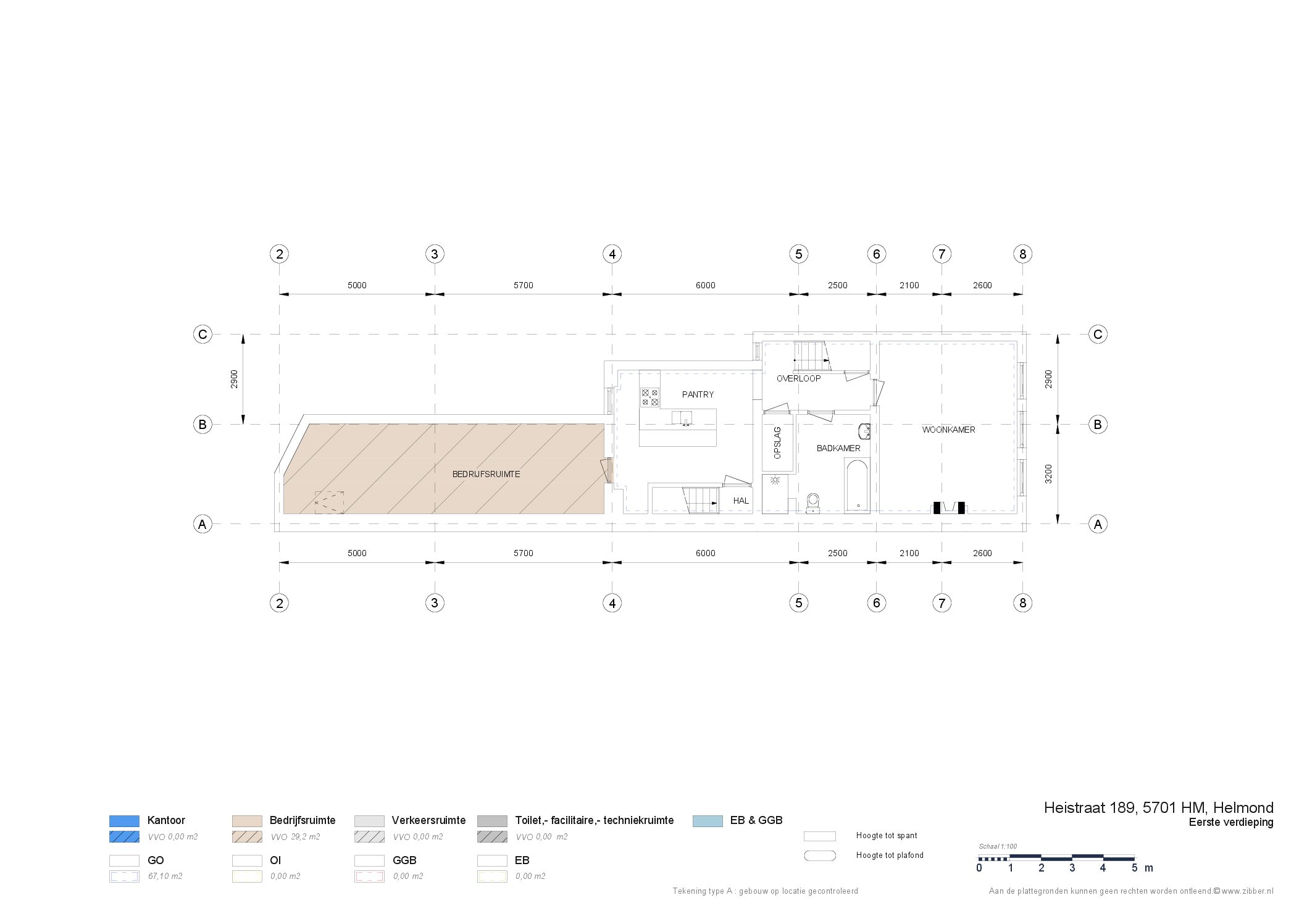 Eerste verdieping: 67 m², bestaande uit een overloop, woonkamer, pantry en badkamer.