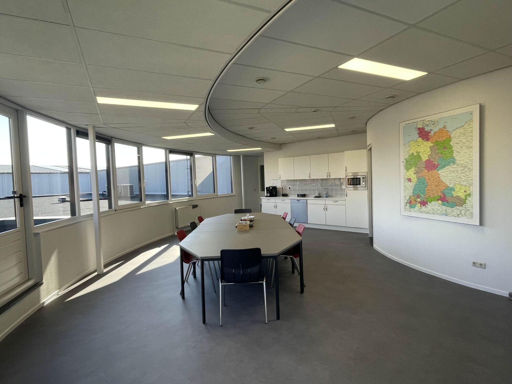 Ruime kantine met dakterras.