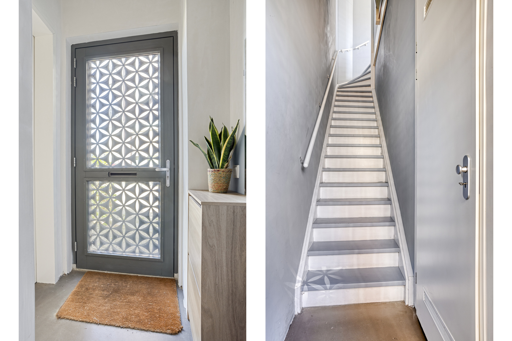 De voordeur geeft je toegang tot de centrale hal met de trap naar het woongedeelte en rechts de deur naar de bedrijfsruimte. Het woongedeelte is op de eerste en tweede verdieping gesitueerd.