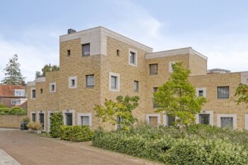 Als je voor het pand staat, valt het mooie metselwerk op dat gecombineerd wordt met gevelbeplating. Dit pand is uniek omdat dit de enige is met een extra verdieping. Doordat het pand meer naar voren is geplaatst, heb je extra lichtinval en uitzicht door de zijramen. Een separate ingang vanuit de straat geeft je toegang tot de bedrijfsruimte op de benedenverdieping. Het is een mooi geheel met de verdiepte ramen, de verschillende raamomlijstingen, de afwisseling van de raamgrootte en hoe deze zijn geplaatst.