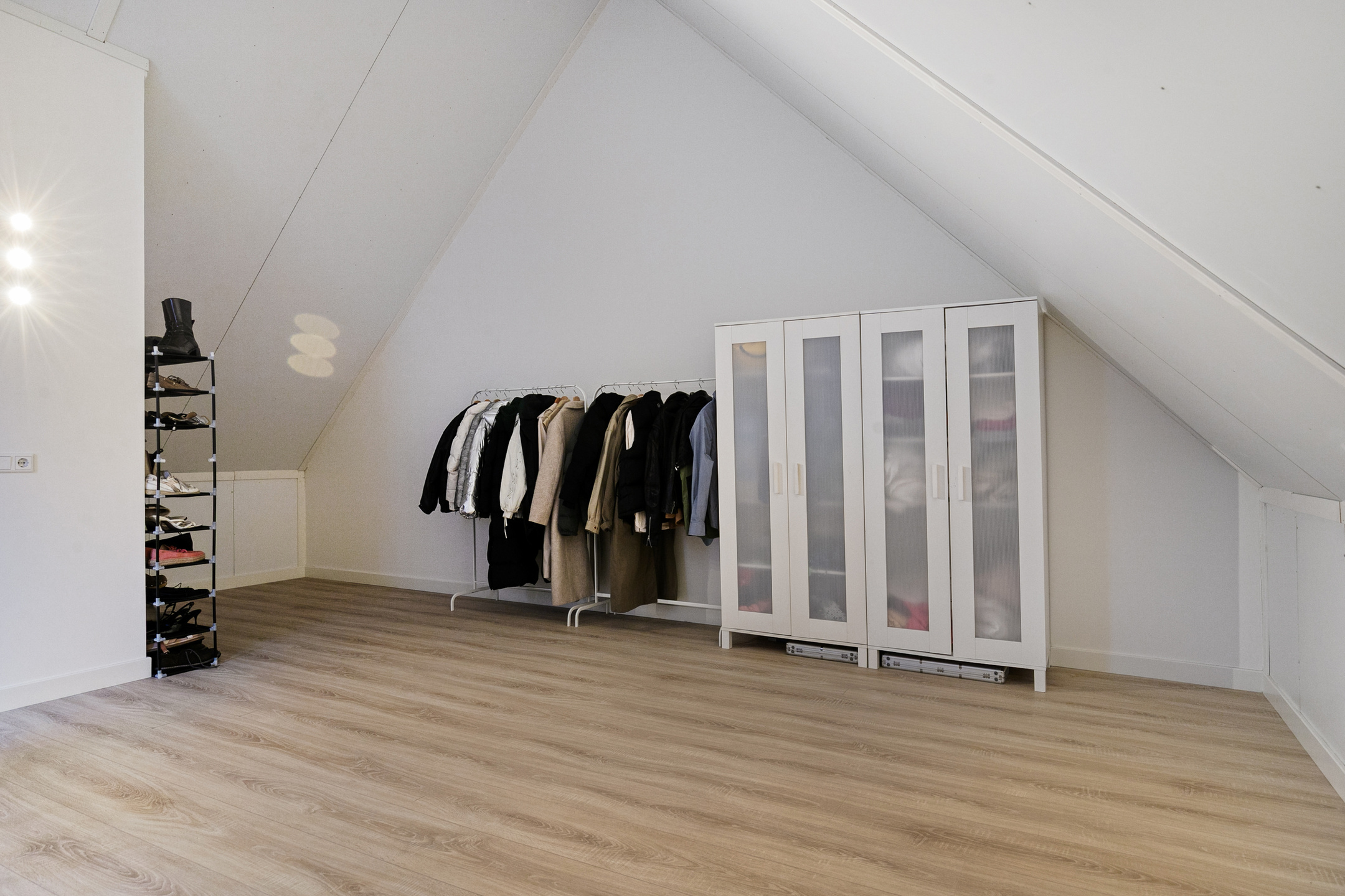 Op de eerste verdieping bevinden zich in de basis drie slaapkamers. In de huidige indeling is de hoofdslaapkamer echter extra luxe uitgevoerd met een walk-in closet. De oorspronkelijke derde slaapkamer is hierbij betrokken en vanuit de hoofdslaapkamer doorgebroken, waardoor een royale inloopkast is ontstaan: ideaal voor kleding en extra opbergruimte.