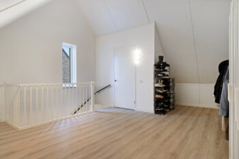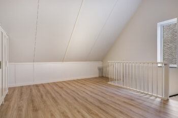 Door de hoge plafonds voelt de ruimte bijzonder ruimtelijk aan. In de huidige indeling kan deze verdieping uitstekend dienen als hoofdslaapkamer, een grote hobby- of vrije tijdsruimte. Daarnaast biedt de verdieping de mogelijkheid om er meerdere slaapkamers van te maken, waardoor de indelingsopties vrijwel eindeloos zijn. Achter de knieschotten aan beide zijden is bovendien extra opbergruimte aanwezig, ideaal voor seizoensgebonden spullen of andere benodigdheden.
