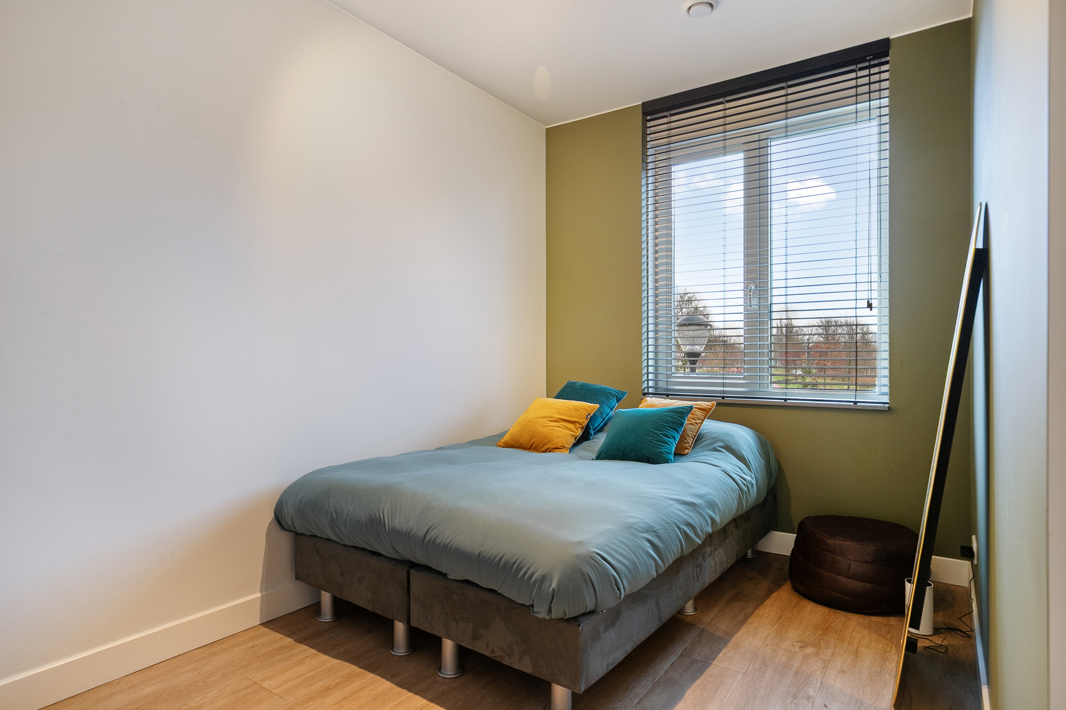 De hoofdslaapkamer is ruim van opzet en biedt moeiteloos plaats aan een tweepersoonsbed met bijbehorende nachtkastjes. De tweede slaapkamer heeft eveneens een prettig formaat en is uitstekend geschikt als volwaardige slaapkamer, maar kan ook perfect dienstdoen als werk- of studeerkamer of voor andere doeleinden.
