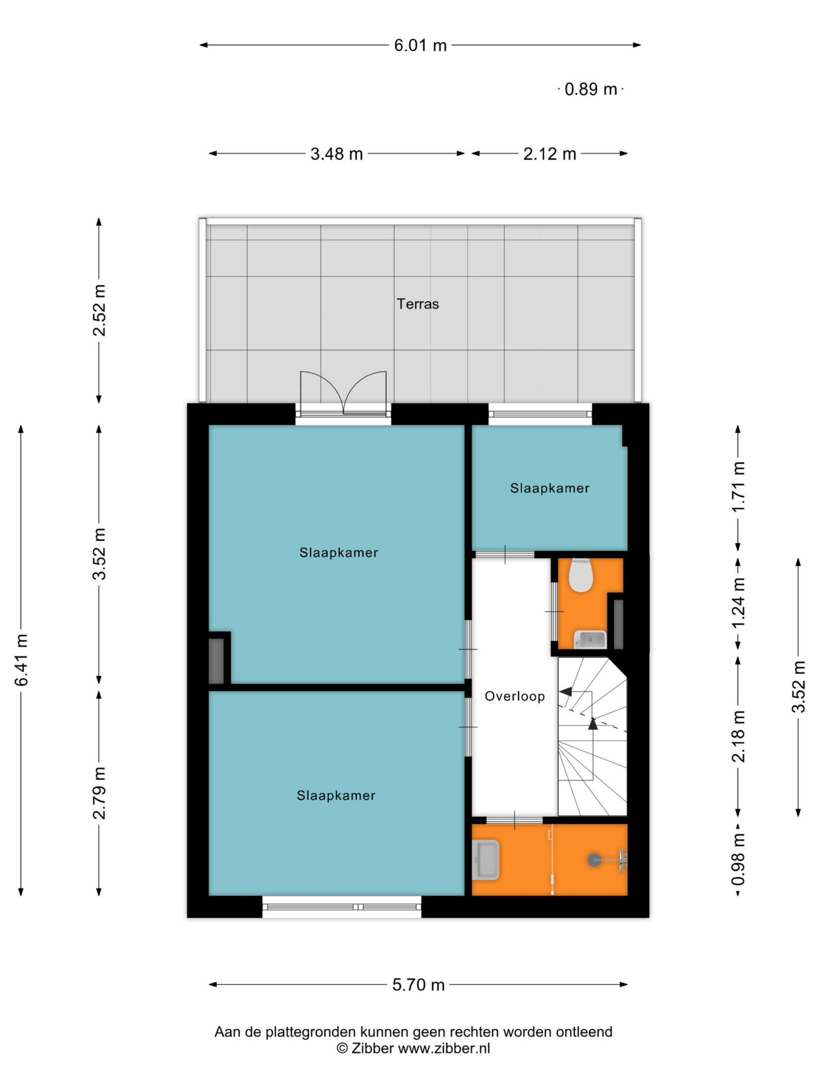 De verdieping heeft drie slaapkamers, een toilet en een badkamer. Een van de slaapkamers is nu in gebruik als werkkamer. De andere kamers zijn ruim en licht. Op de vloer ligt een mooie laminaat.