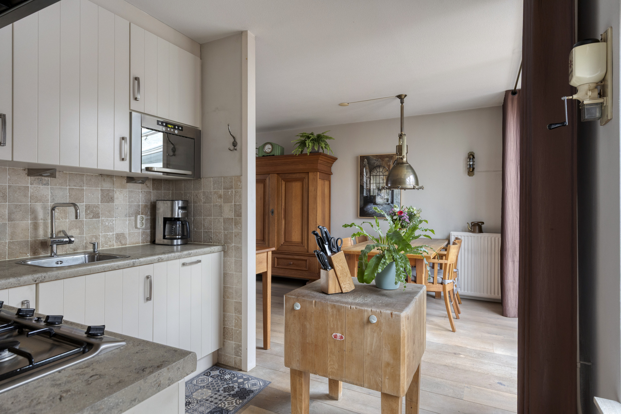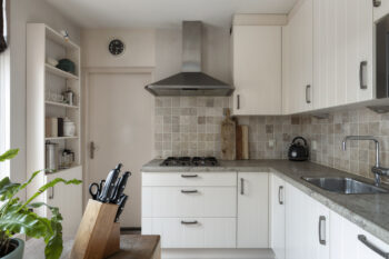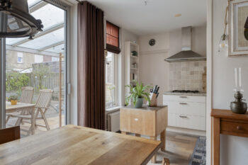 Vanuit de keuken bereikt u de bijkeuken, een uitermate praktische ruimte waar zich de witgoedaansluitingen en de C.V.-