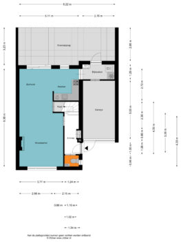 zijn verder gelegen de meterkast, trapopgang en toegang tot de woonkamer.
