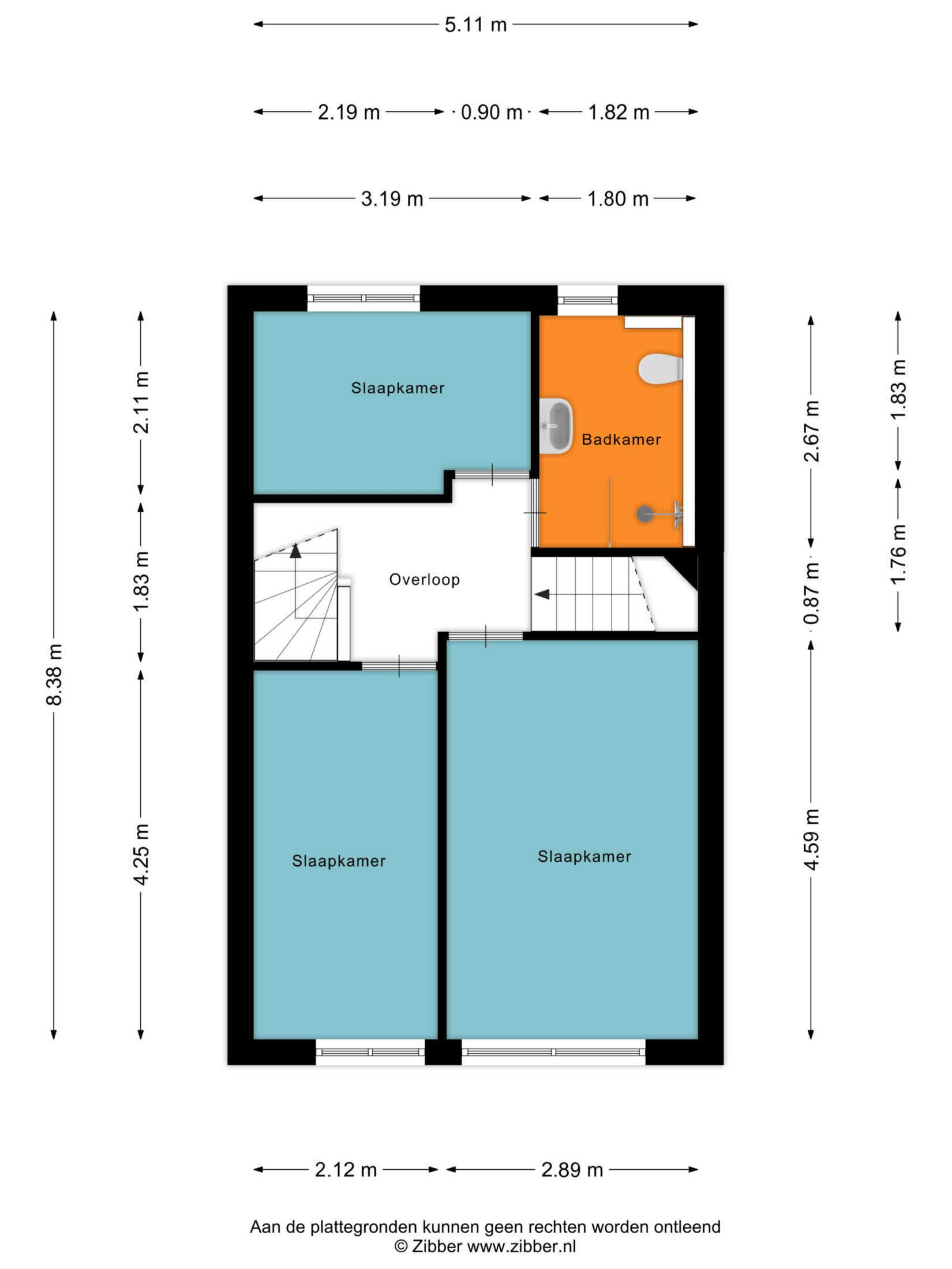 Aan de achterzijde bevindt zich de derde slaapkamer welke circa 7 m² groot is. Om een goede indruk van de fijne afmetingen van deze ruime slaapkamers te verkrijgen verwijzen wij graag naar de bijgevoegde indelingsplattegronden.