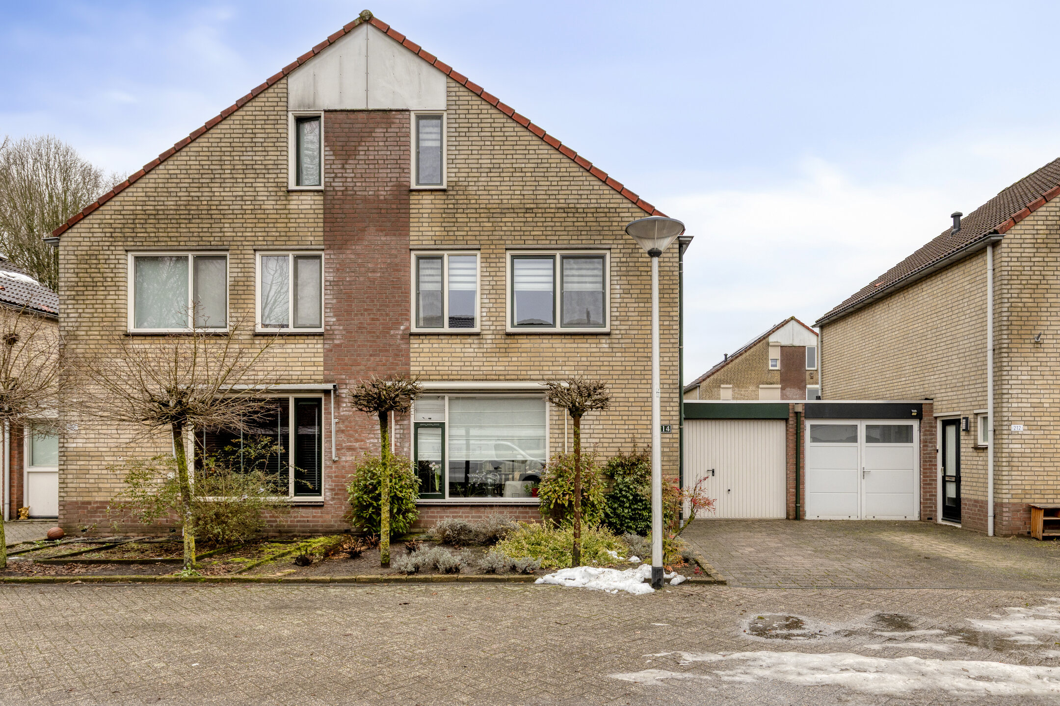 De garage is aan de oprit gelegen en beschikt over een kanteldeur met geïntegreerde loopdeur.