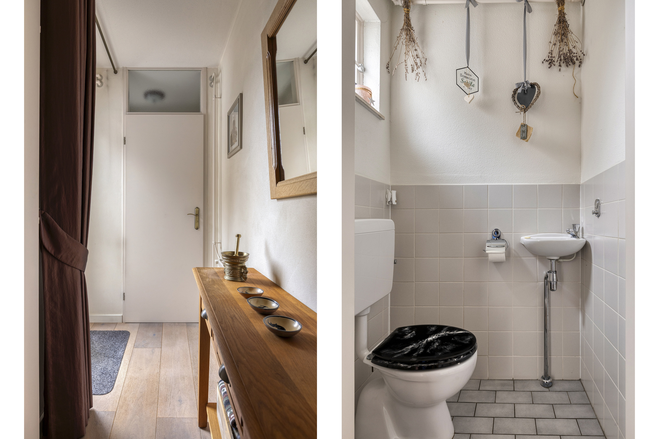 De entree is ruim van opzet en beschikt over de toiletruimte voorzien van tegelwerk, een fonteintje en toilet. Aan de entree