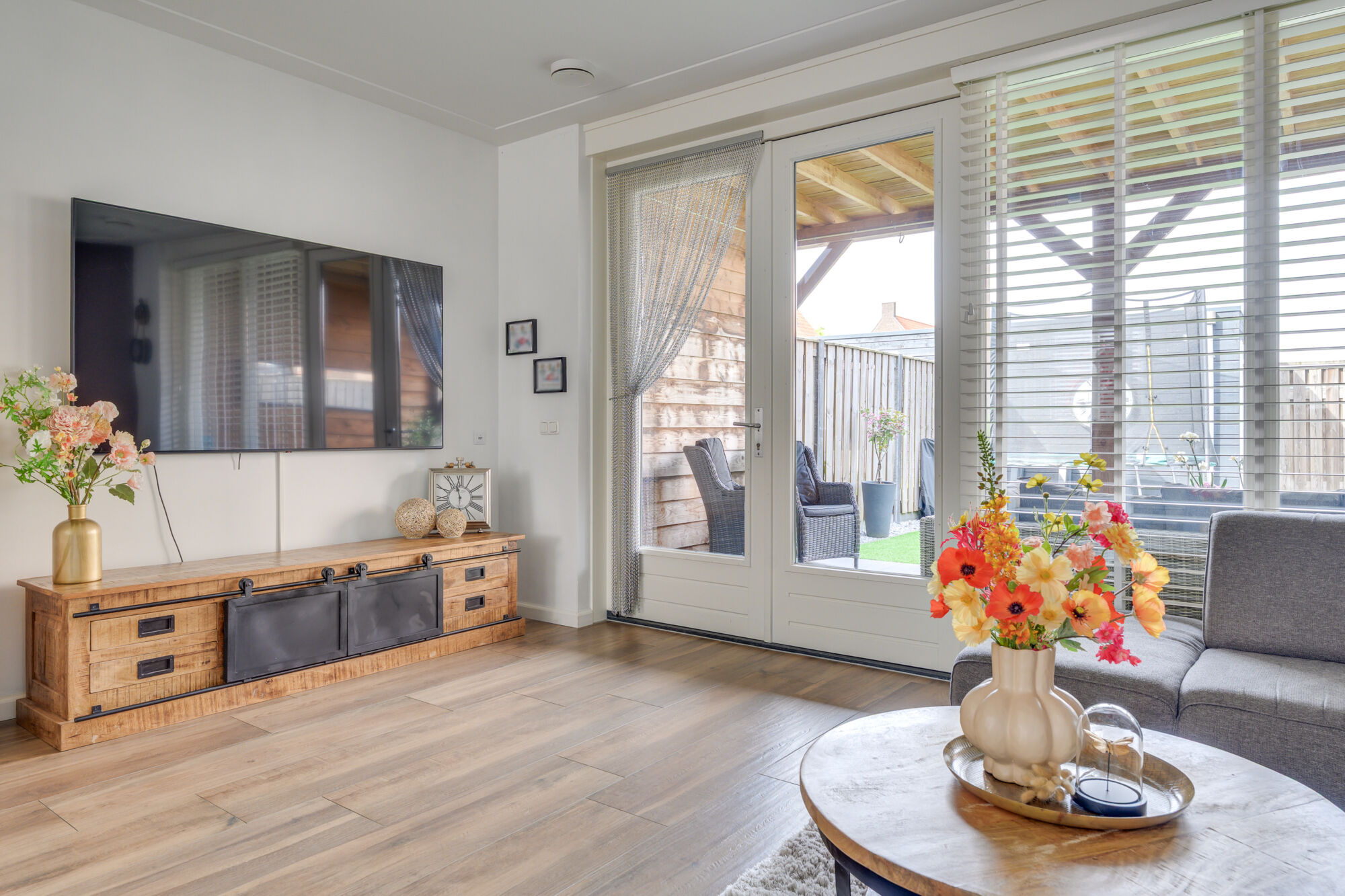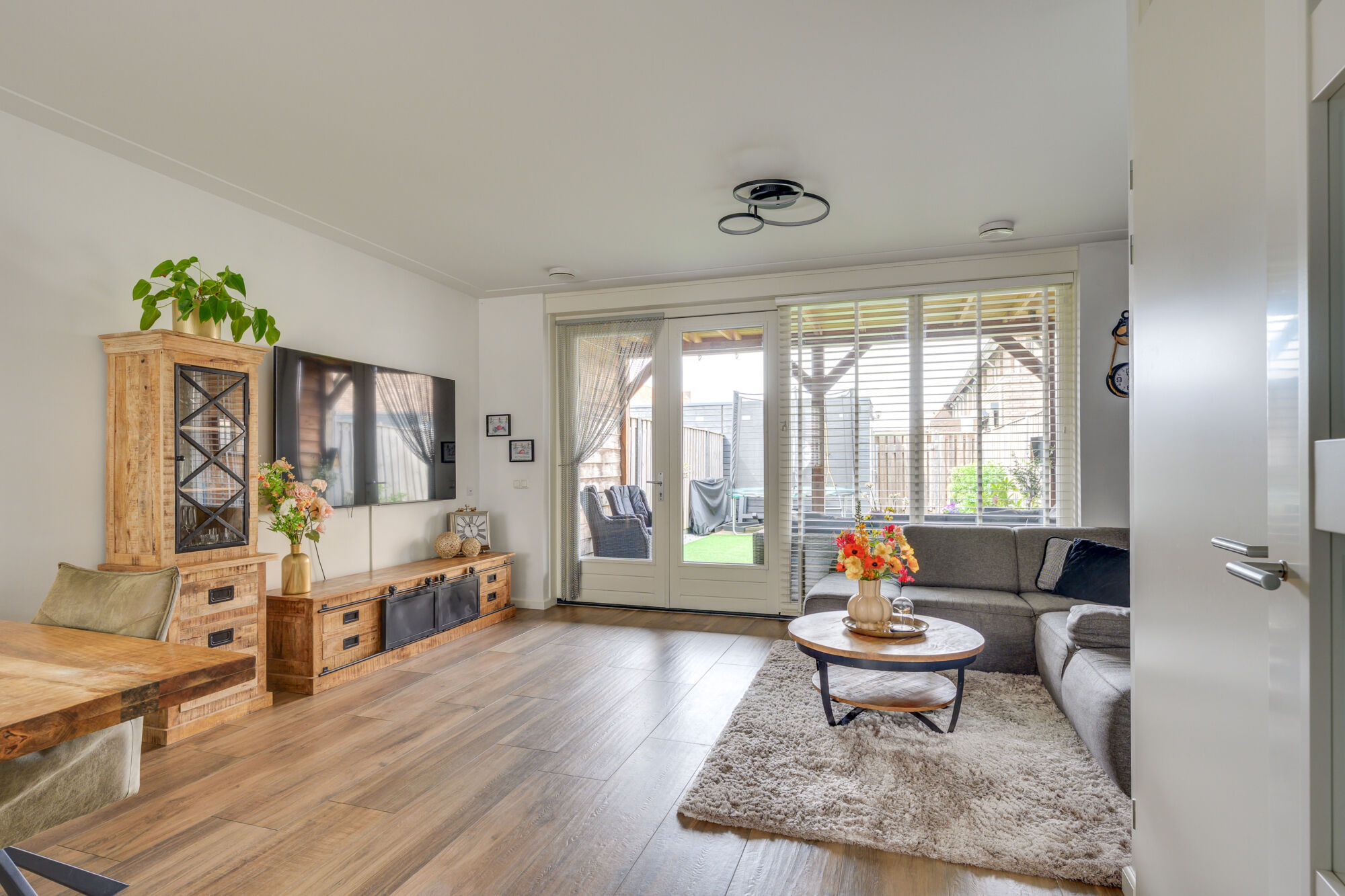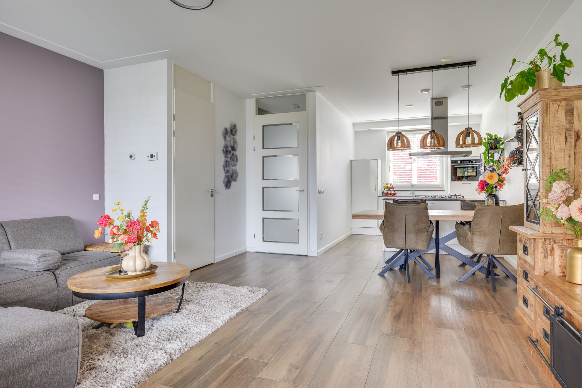 De woonkamer is heerlijk licht en modern afgewerkt, geheel in lijn met wat u mag verwachten van een jonge woning. De houtlook vloer in combinatie met strak gestucte wanden en plafonds zorgt voor een eigentijdse en verzorgde uitstraling.
