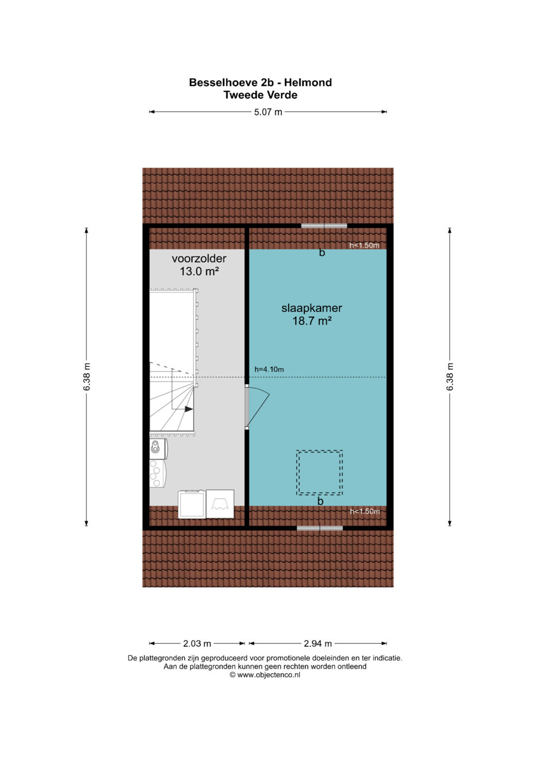 Door het royale formaat is deze ruimte uitstekend geschikt als hoofdslaapkamer, maar kan ook perfect dienen als ruime kinder- of hobbyruimte. Tot slot bieden de knieschotten extra bergruimte.