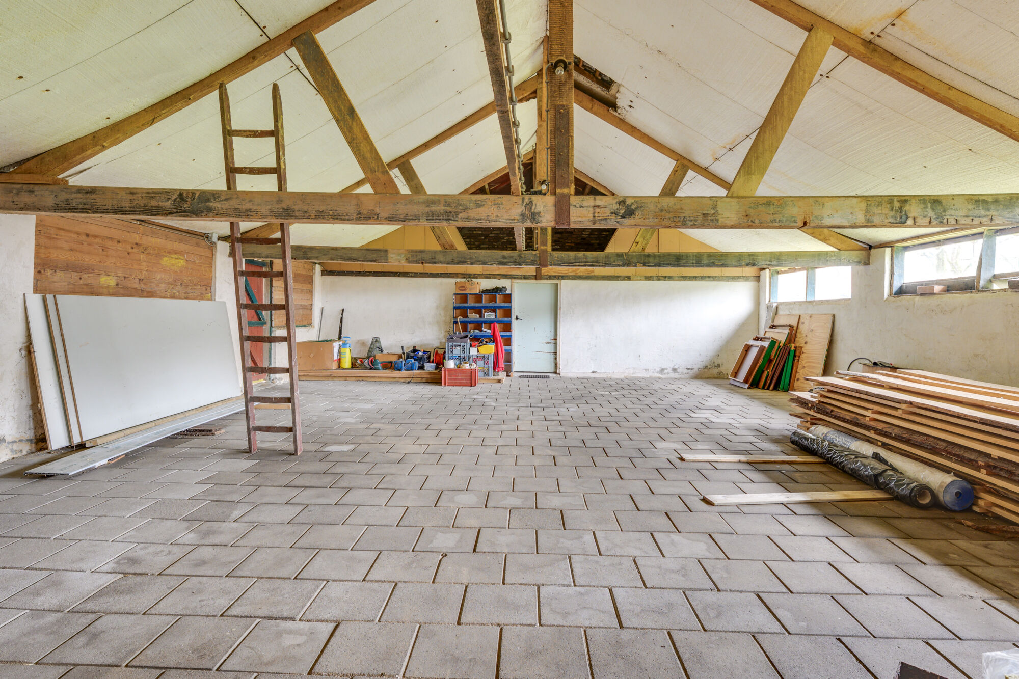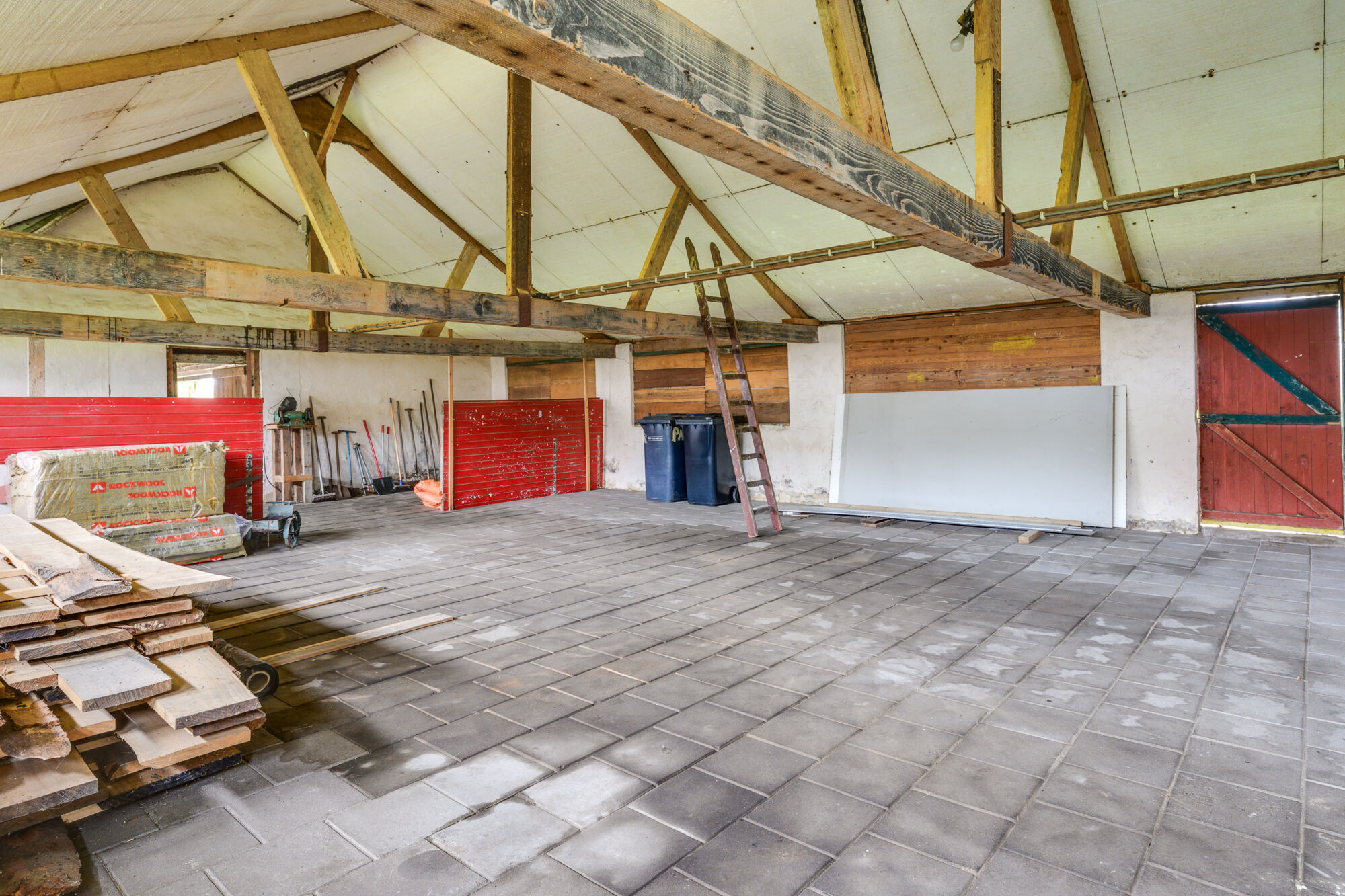 Vervolgens bereikt u de ruime schuur van maar liefst ruim 100 m². Deze multifunctionele ruimte biedt talloze mogelijkheden: van het stallen van voertuigen, machines of tuingereedschap tot het inrichten van een hobby- of werkplaats. Dankzij de royale afmetingen kunt u hier letterlijk alle kanten op. Denk bijvoorbeeld aan het creëren van opslagruimte, een atelier, een klusruimte of het onderbrengen van dieren. Een ruimte met enorme potentie voor zowel hobbyisten als professionals.