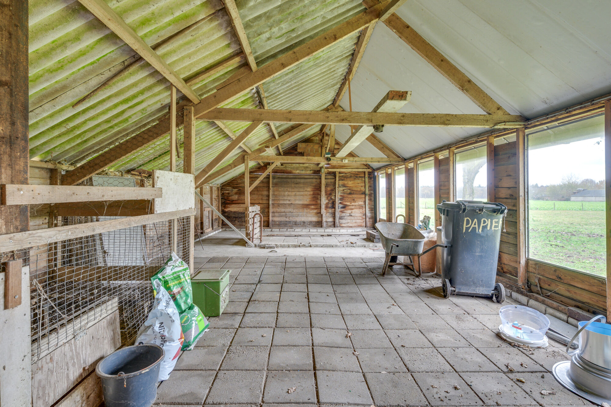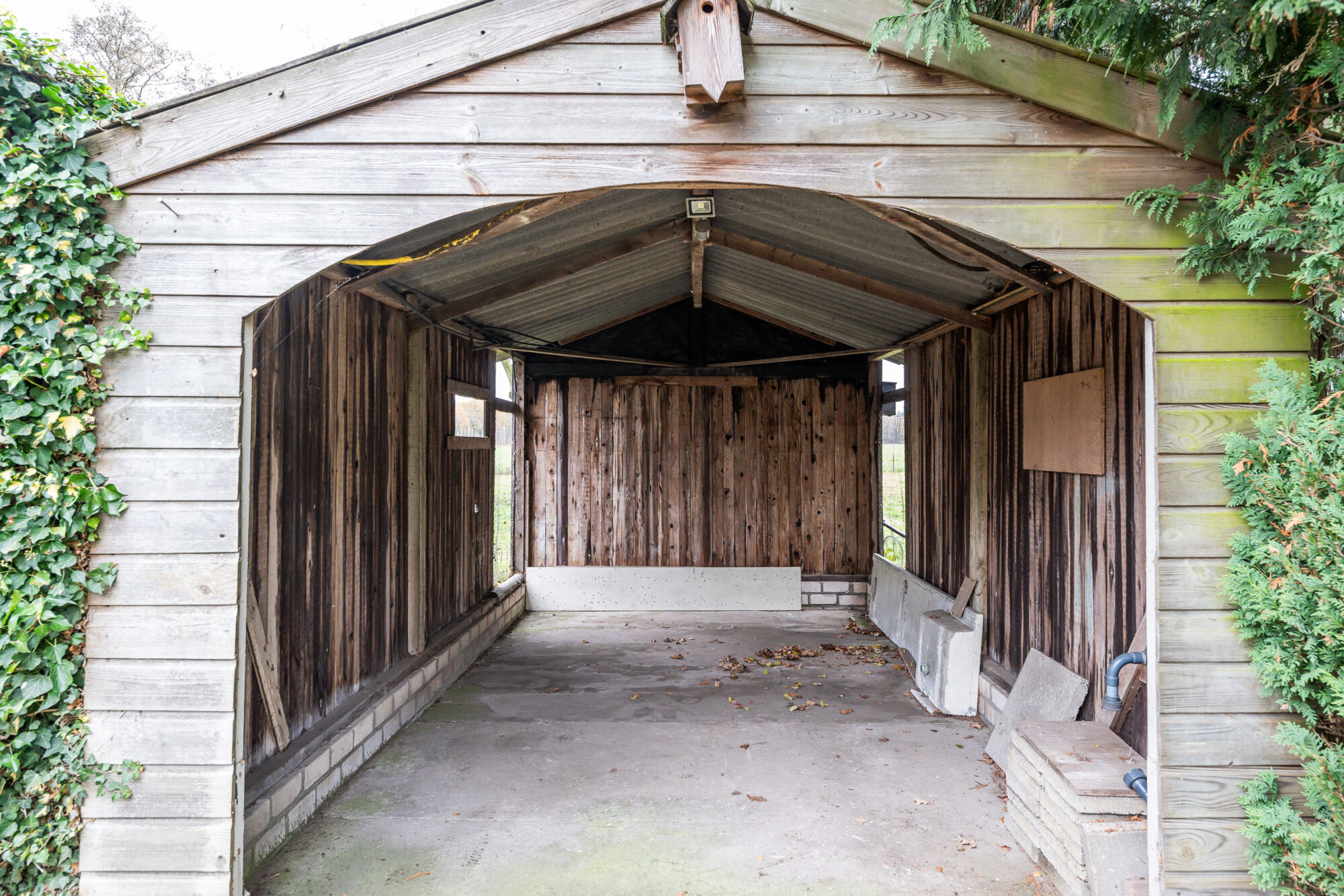 Via de overkapping bereikt u de voormalige kippenschuur van circa 43 m².