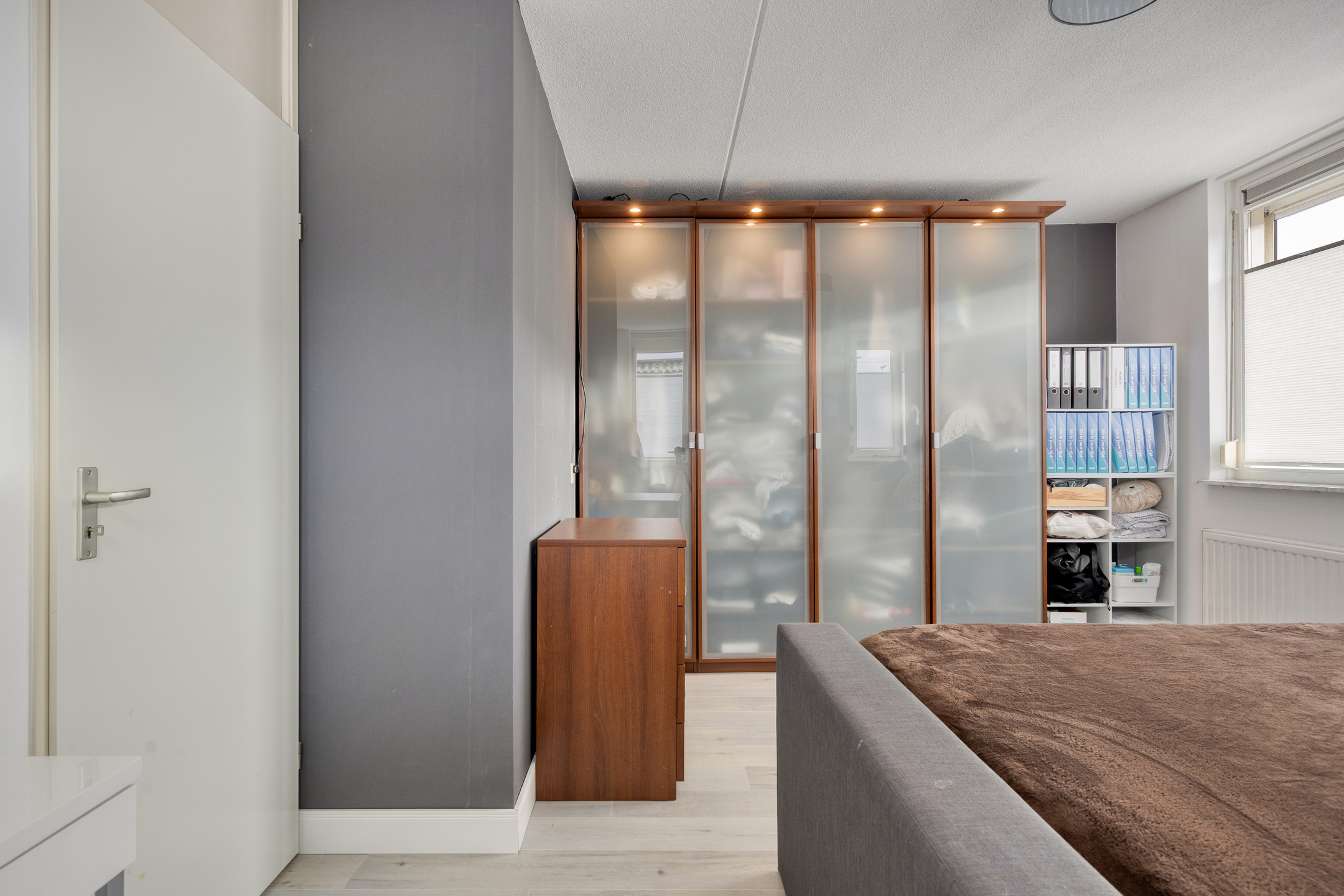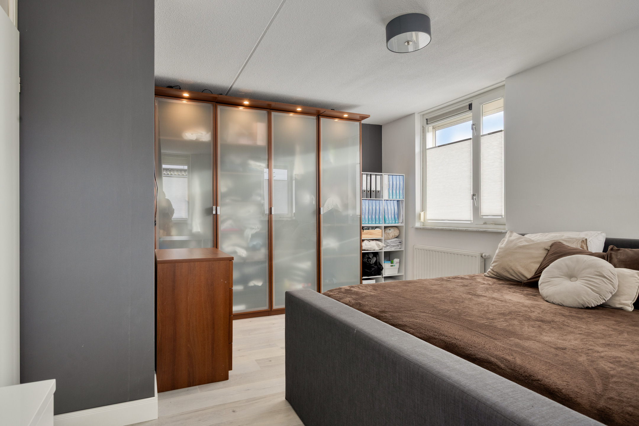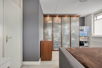 De master bedroom (zuid/west) is riant, licht en biedt genoeg ruimte voor een groot bed én extra kastruimte.