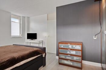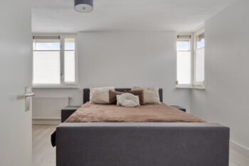 De tweede slaapkamer (west/noord) heeft een bijzonder extraatje: dubbele deuren naar een groot dakgedeelte boven de keuken. Dit biedt volop mogelijkheden voor een heerlijk dakterras.