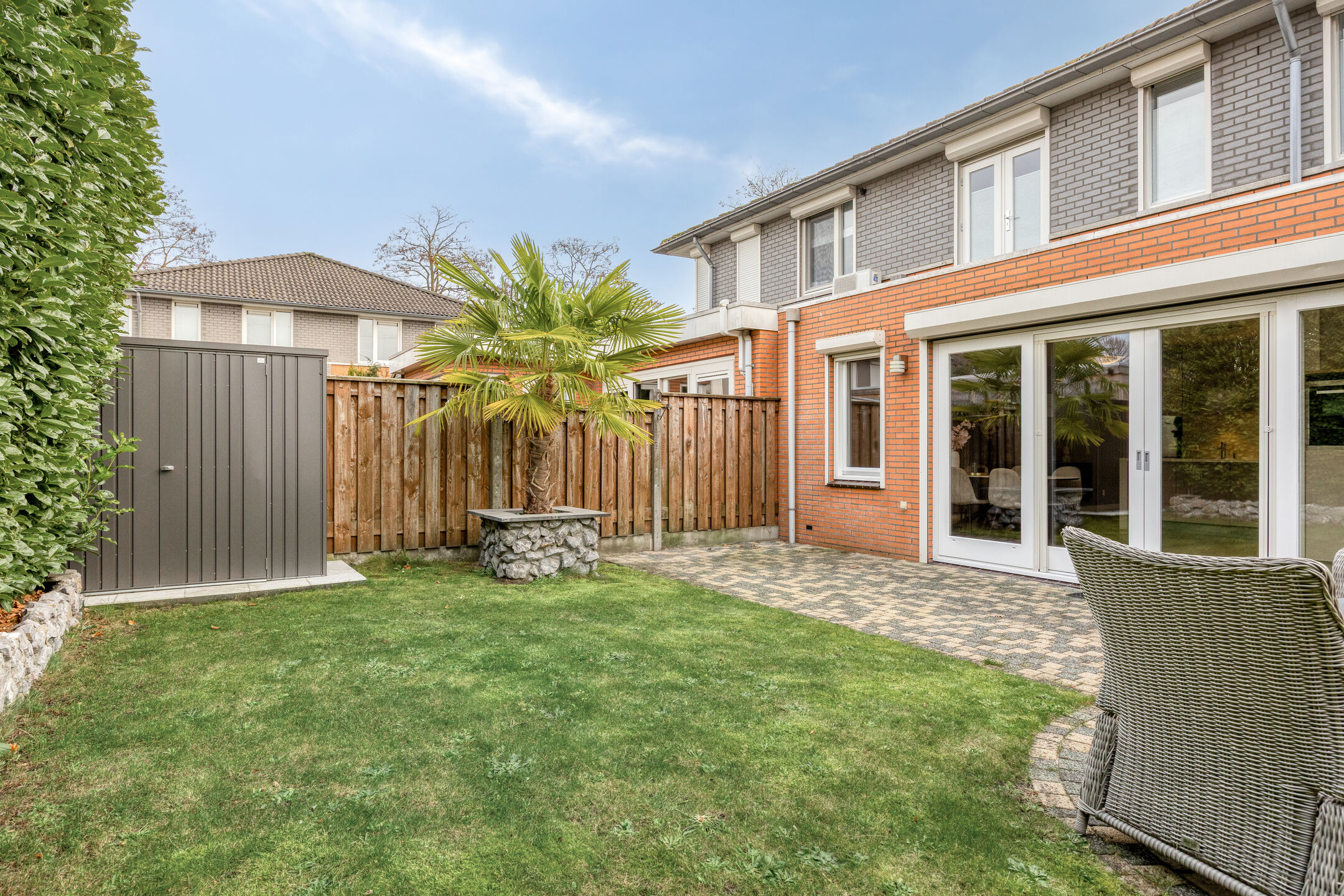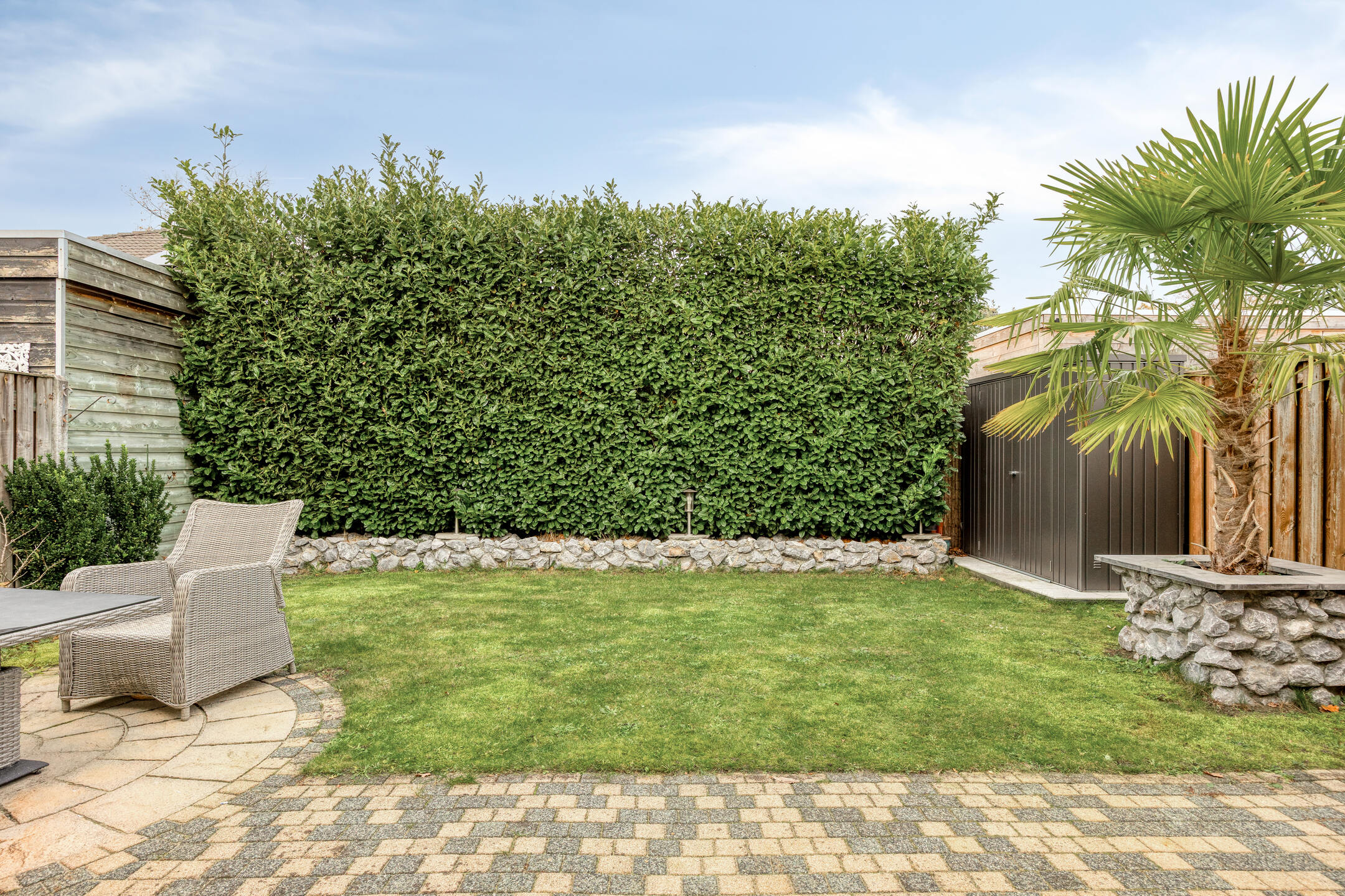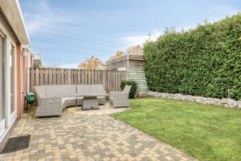 De achtertuin ligt op het noorden, waardoor je een fijne mix hebt van zon én schaduw. Op het terras zit je beschut, terwijl je op het gazon kunt genieten van de zon. De tuin beschikt over meerdere stroompunten, verlichting, een buitenkraan en een praktische berging met stroom.