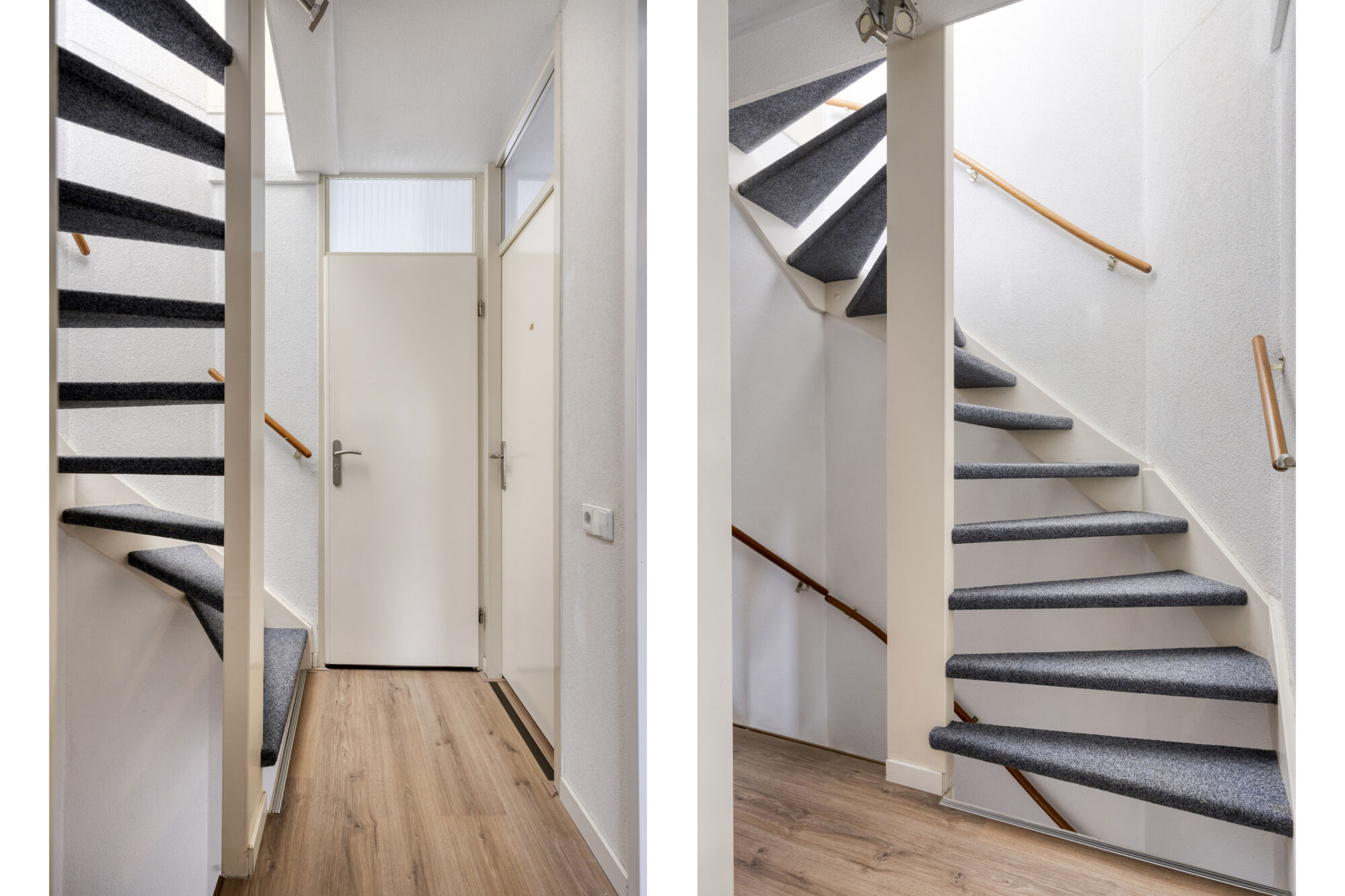 Via de vaste trap bereiken we de overloop van de eerste verdieping. Hier bevinden zich drie slaapkamers en de badkamer.