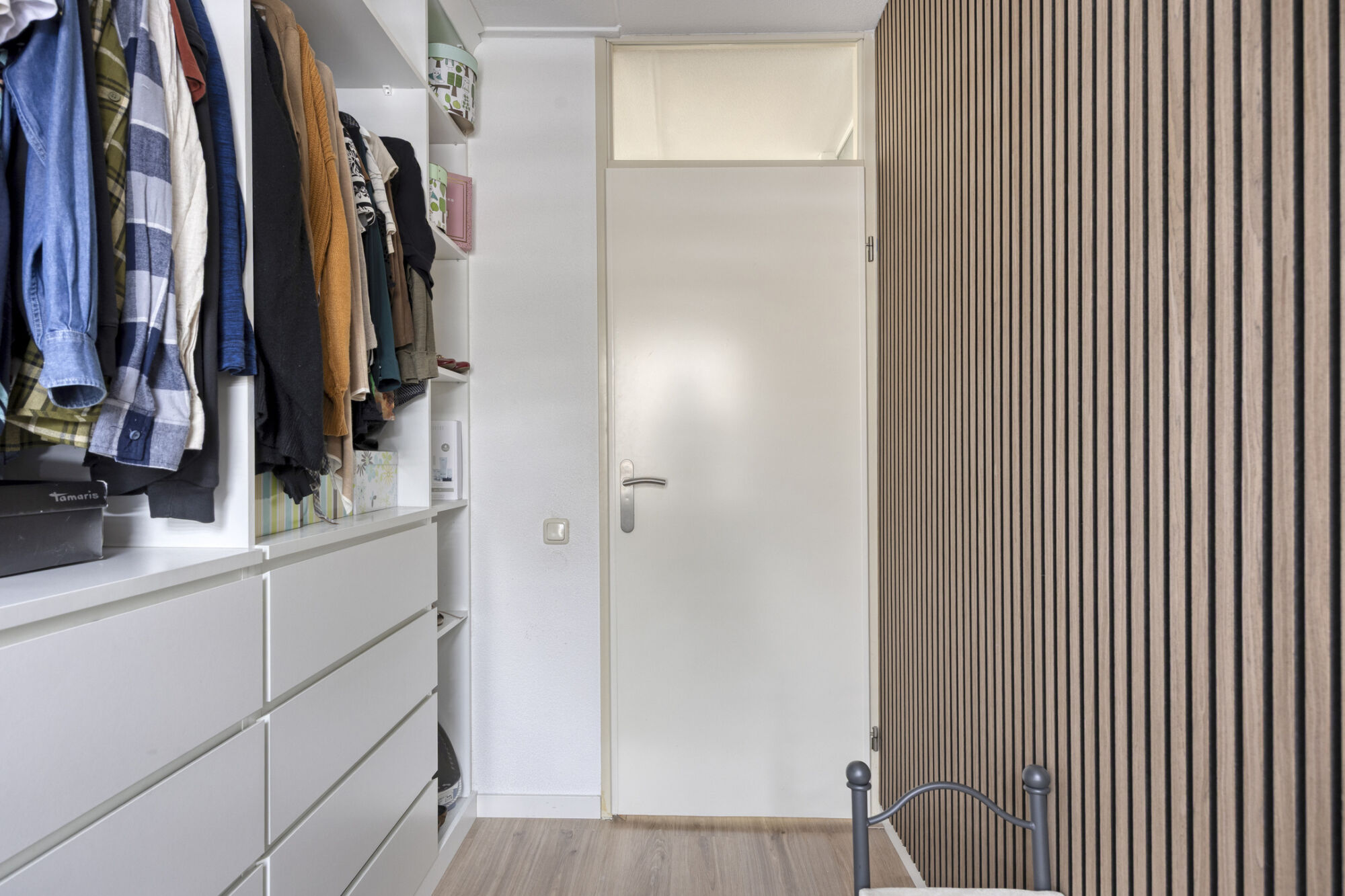 De tweede slaapkamer heeft eveneens een prettig formaat en is uitstekend geschikt als volwaardige slaapkamer, maar leent zich ook perfect voor gebruik als werkkamer of thuis kantoor. De derde slaapkamer is iets compacter, en ideaal te gebruiken als bijvoorbeeld een walk-in closet, babykamer of hobbyruimte. Deze slaapkamer beschikt zelfs al over handige inbouwkasten, waardoor er al voldoende opbergruimte aanwezig is.