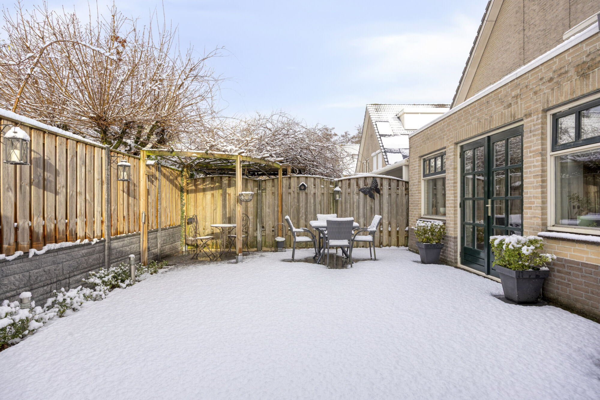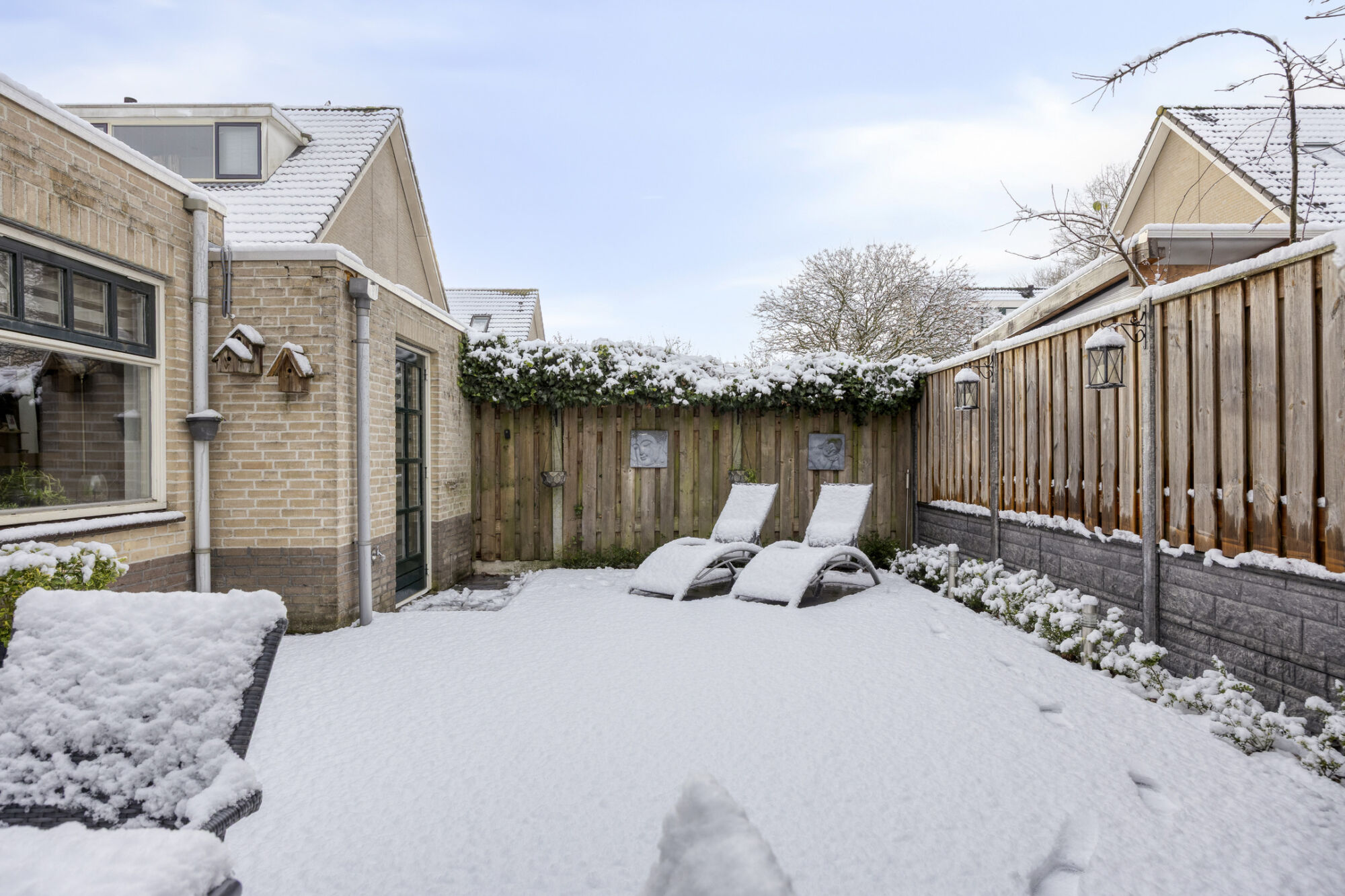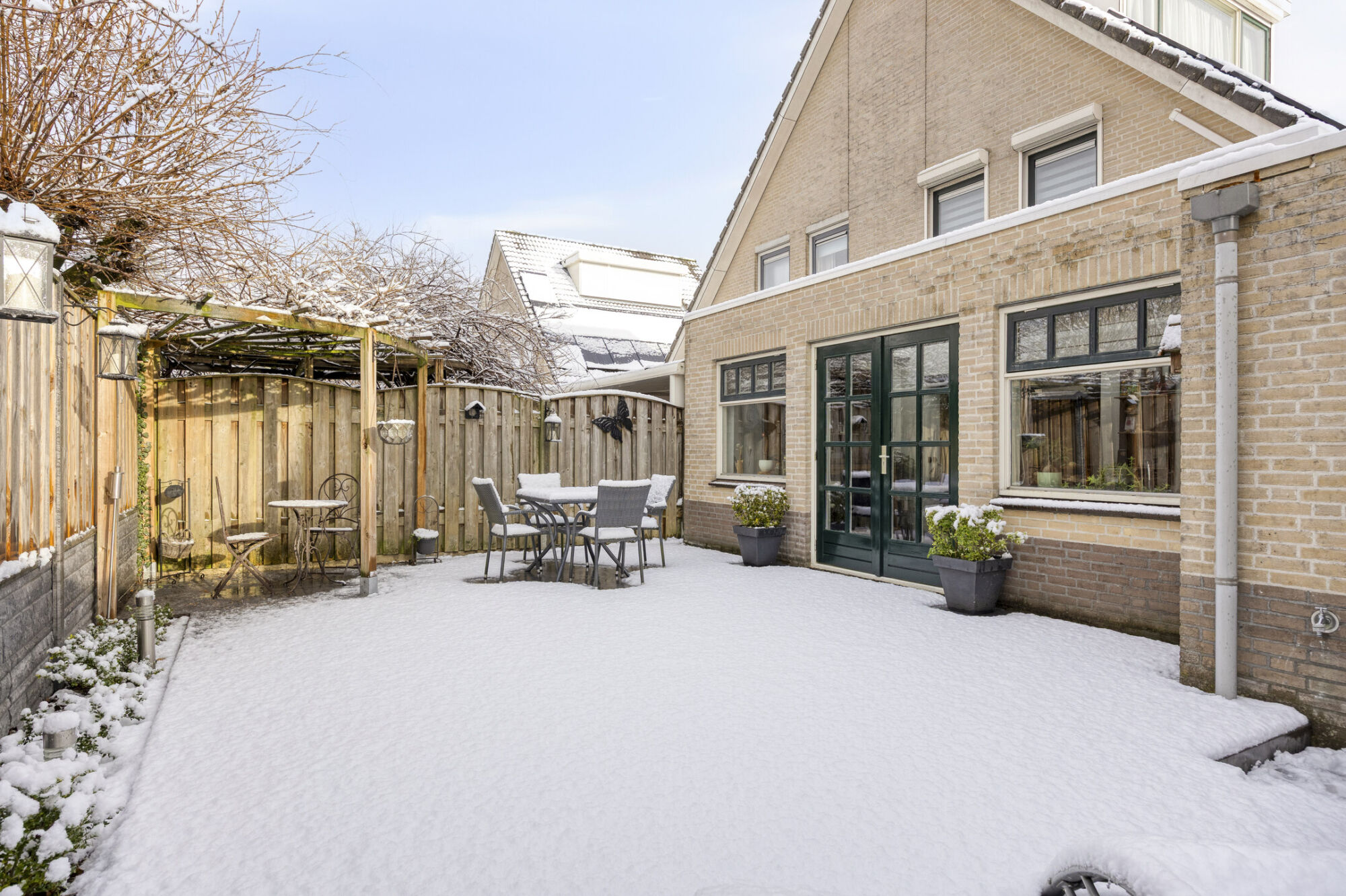De buitenruimte bestaat uit een breed opgezette achtertuin, gelegen op het westen. Dankzij de grotendeels bestrate aanleg is de tuin onderhoudsvriendelijk en biedt deze volop mogelijkheden om op verschillende plekken een tuin- of loungeset te plaatsen. Hierdoor is er op elk moment van de dag wel een fijn plekje te vinden in de zon of juist in de schaduw.