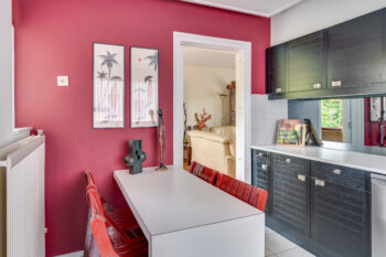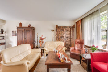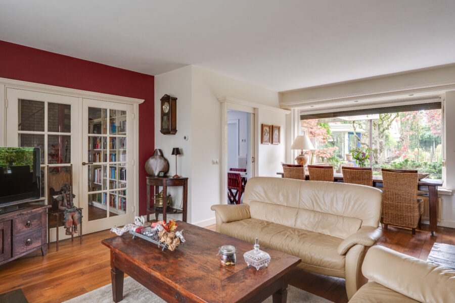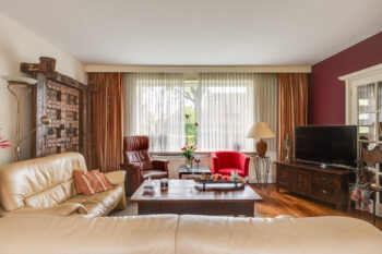 – De woonkamer wordt overgoten in zonlicht door de grote ramen;