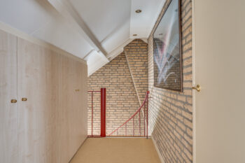 De overloop van de tweede verdieping fungeert in principe als een berging aangezien je je spullen in de inbouwkasten op kunt bergen. Deze inbouwkasten zijn uitgevoerd over de hele aanloop naar de slaapkamer.