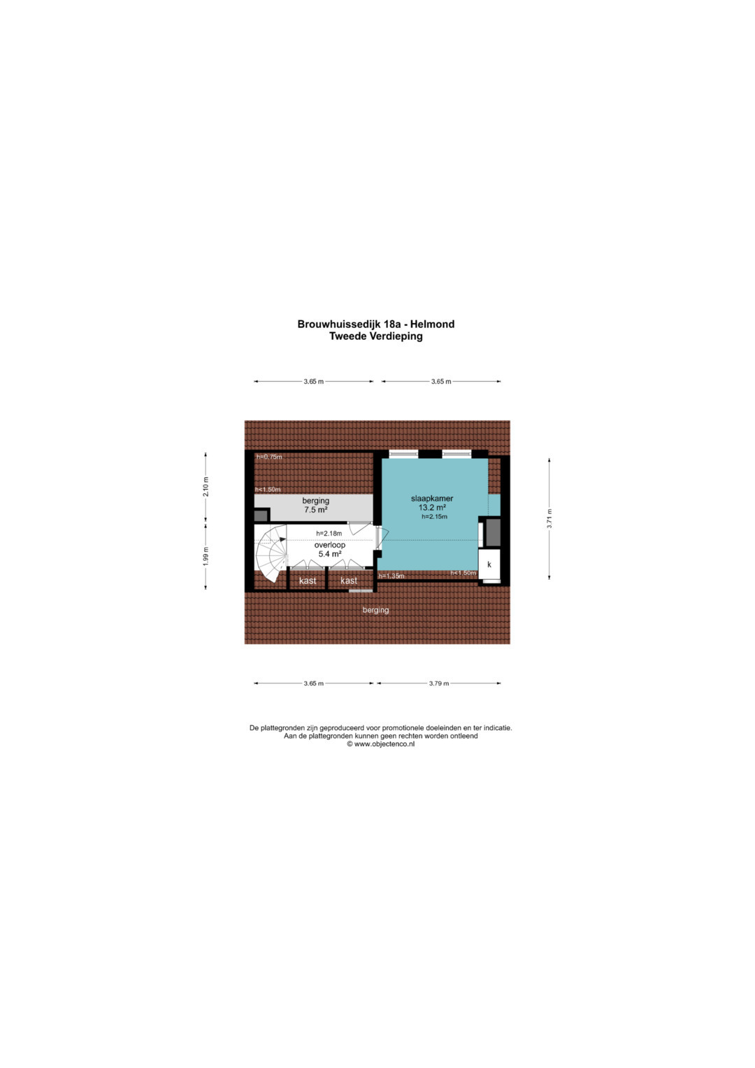 Het metselwerk is vanuit de hal via de eerste verdieping doorgetrokken naar de tweede verdieping en creëert zo een samenhangend geheel. Via een loopdeur kom je in de derde slaapkamer met groot dakkapel. Aan de linkerzijde tref je nog een extra berging voor nog meer opslag.