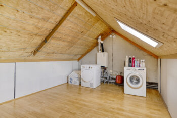 Via de vaste trapopgang op de overloop van de eerste verdieping komt u op de zolder. Deze wordt momenteel gebruikt als bergzolder en als wasruimte. Met enige aanpassingen met betrekking tot afwerking en de toevoeging van een extra dakraam of dakkapel is deze ruimte om te toveren tot – bijvoorbeeld – volwaardige slaapkamer! Hier vindt u tevens de C.V.-opstelling en de aansluitingen voor wasmachine en –droger.