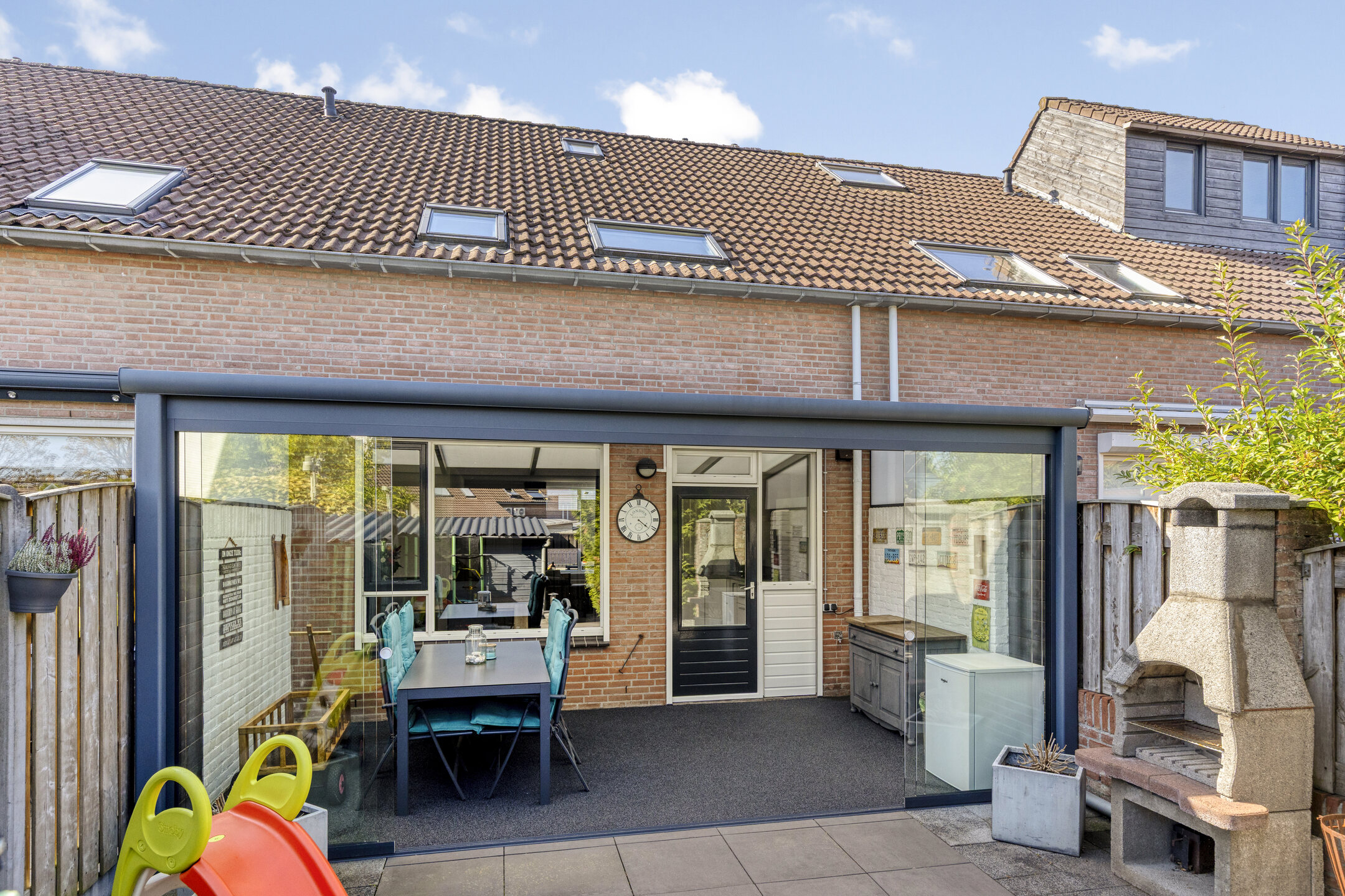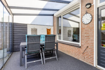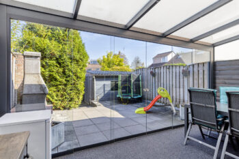 – Serre met een grote glazen schuifdeur, aan de voorzijde kunststof kozijnen en aan de achterzijde rolluiken op de begane grond.
