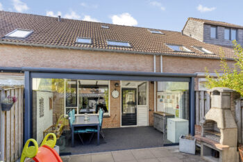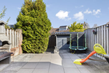 De achtertuin is vrijwel geheel voorzien van bestrating en daardoor onderhoudsvriendelijk ingericht. Aan de achterzijde van de tuin vindt u een handige houten berging en de poort naar het achtergelegen gangpad. Dit gangpad leidt u naar de straat, waar u direct een heel groot speelhofje treft. Ideaal voor gezinnen met kinderen! Op dit speelhofje zijn o.a. een voetbalveldje en speeltoestellen te vinden.