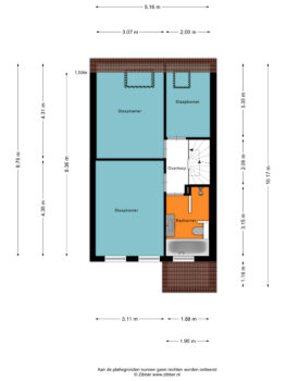 De twee slaapkamers aan de linkerzijde van de woning zijn het grootst, maar liefst ca. 14 m²! Alle slaapkamers zijn voorzien van grote raampartijen die zorgen voor daglichttoetreding. Door de afmetingen spreken we over 3 volwaardige kamers.