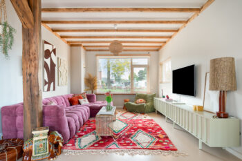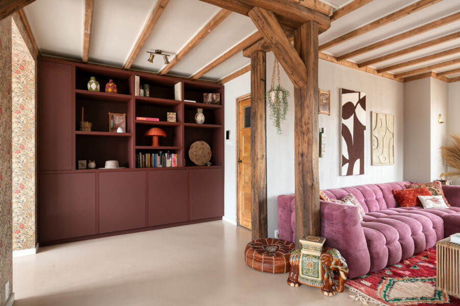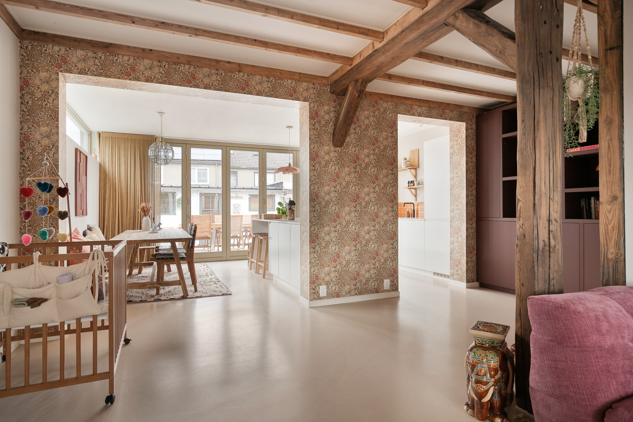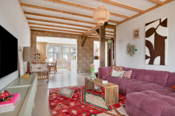 * Authentieke houten balken geven de woonkamer extra karakter.