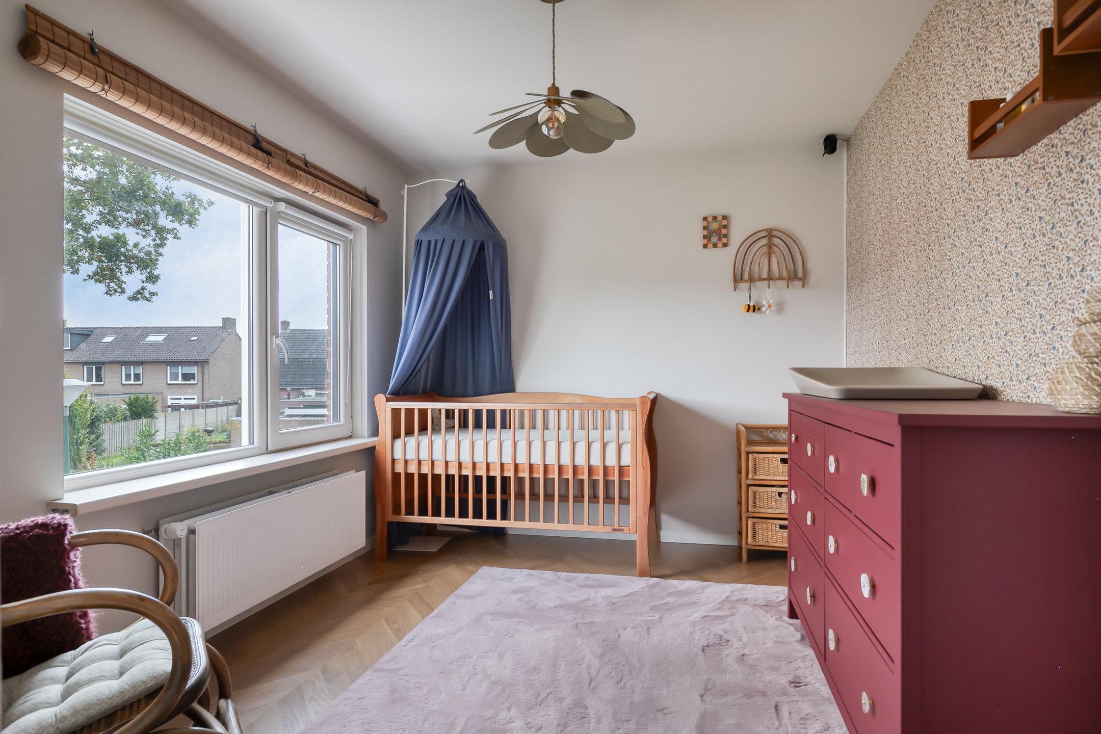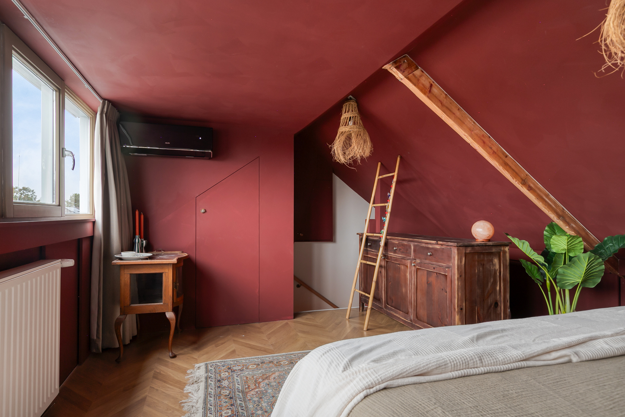 De woning beschikt over drie slaapkamers, waarvan twee op de eerste verdieping. Beide kamers hebben een warme en verzorgde uitstraling.