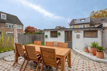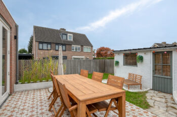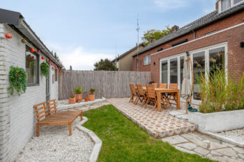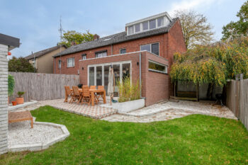 Aan de achterzijde is de woning fors uitgebouwd, wat zorgt voor extra leefruimte op de begane grond. De tuin is onderhoudsvriendelijk aangelegd en biedt veel privacy.