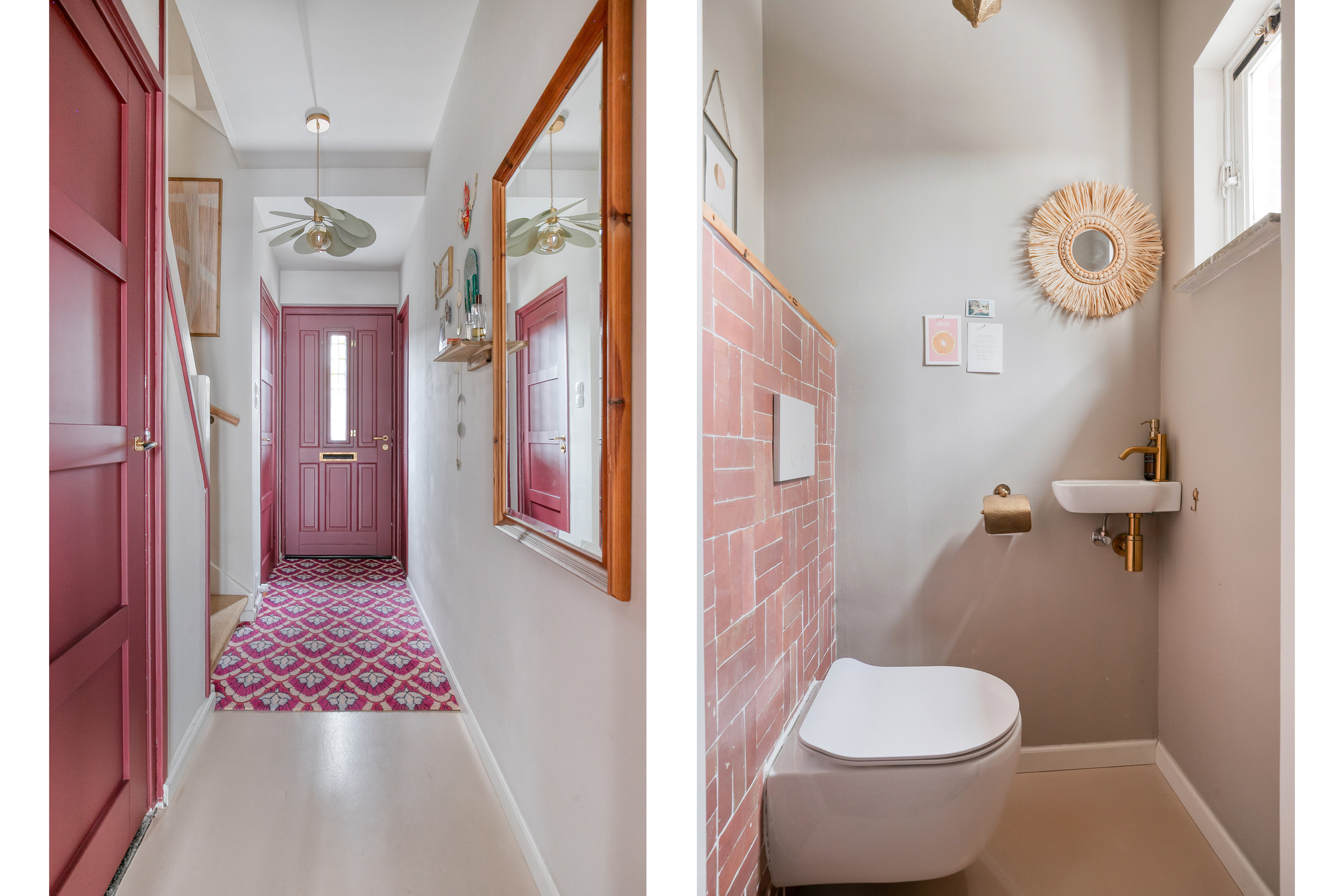 De begane grond is volledig voorzien van vloerverwarming, wat bijdraagt aan het comfort én de strakke uitstraling. Ook het separate toilet in de hal is stijlvol en compleet afgewerkt.
