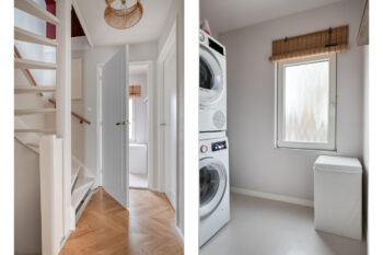 De kamers zijn ruim opgezet en genieten van veel natuurlijke lichtinval, wat zorgt voor een prettige en rustige sfeer. De afwerking is tot in detail verzorgd, met mooie vloeren, strakke wanden en een harmonieuze kleurstelling. Ook is er een aparte ruimte voor de droger en de wasmachine.