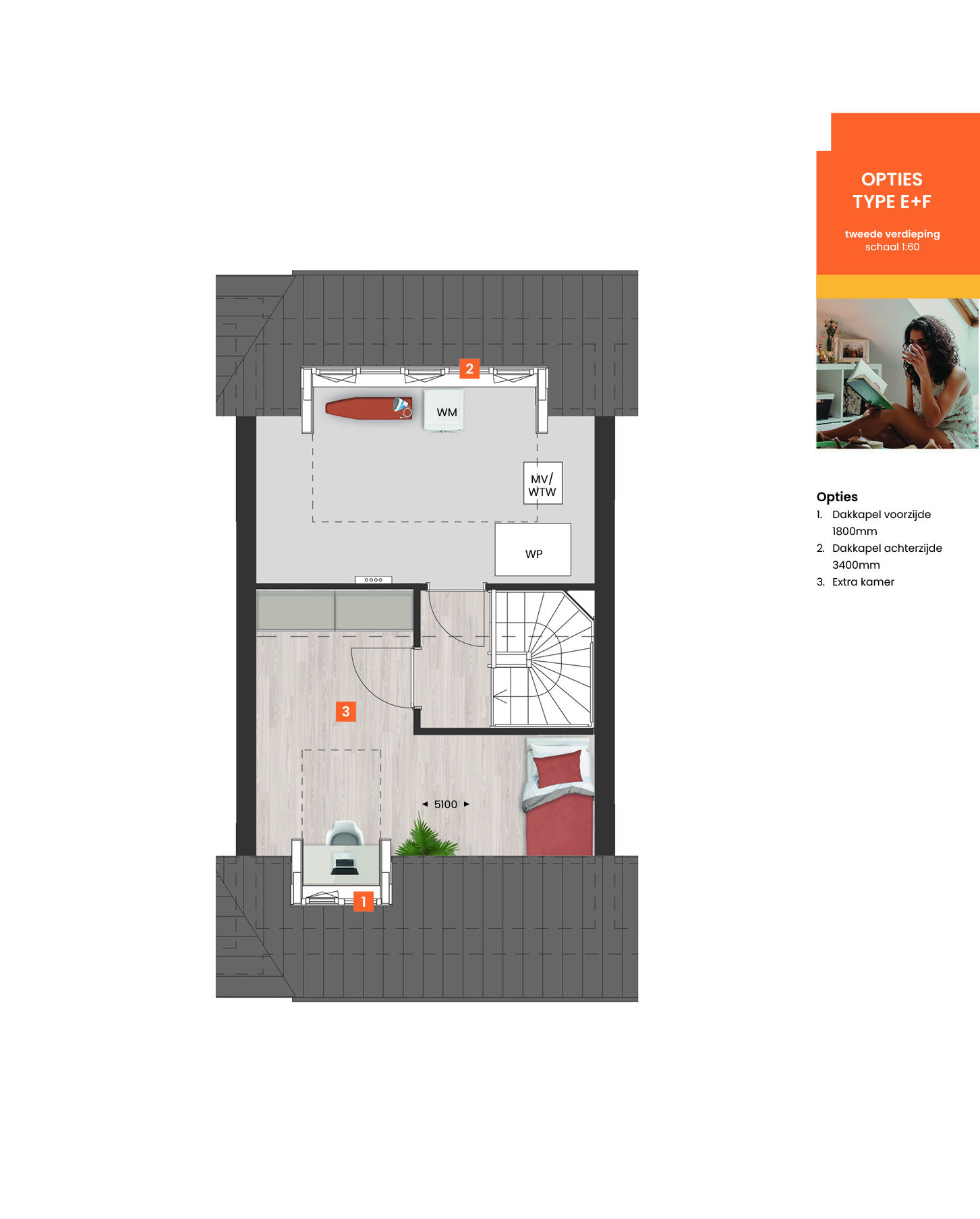 Ook op de tweede verdieping zijn er volop mogelijkheden. Met een dakkapel en/of dakramen creëer je een lichte, ruime (slaap)kamer of een fijne speelruimte. Liever een praktische indeling? Richt een aparte wasruimte in door een scheidingswand te plaatsen.