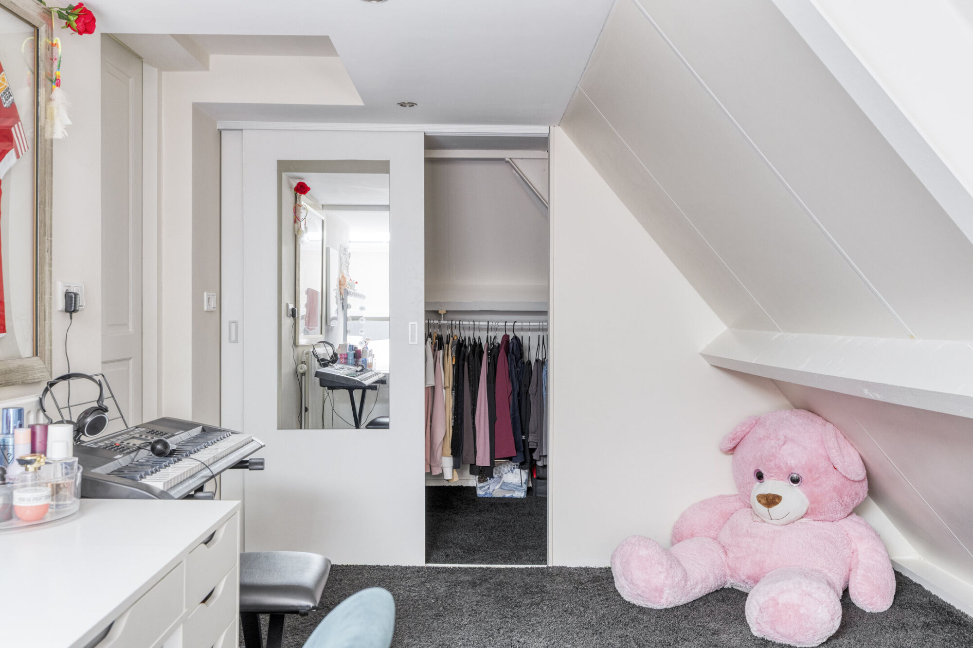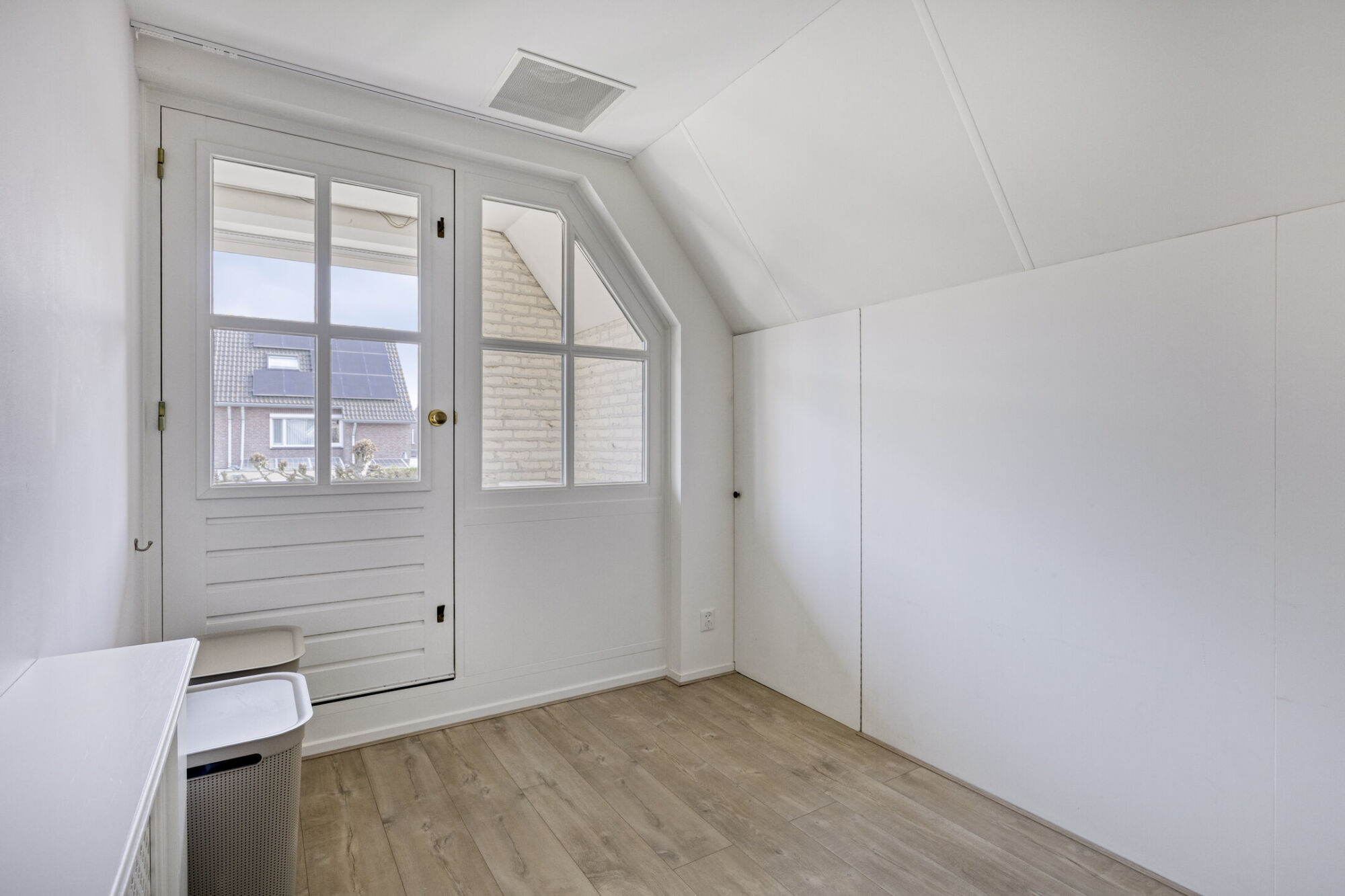 Denk bijvoorbeeld aan een kinderkamer, logeerkamer of een kastenkamer. Daarnaast biedt deze kamer toegang tot een inpandig balkonnetje, ook wel een loggia genoemd.