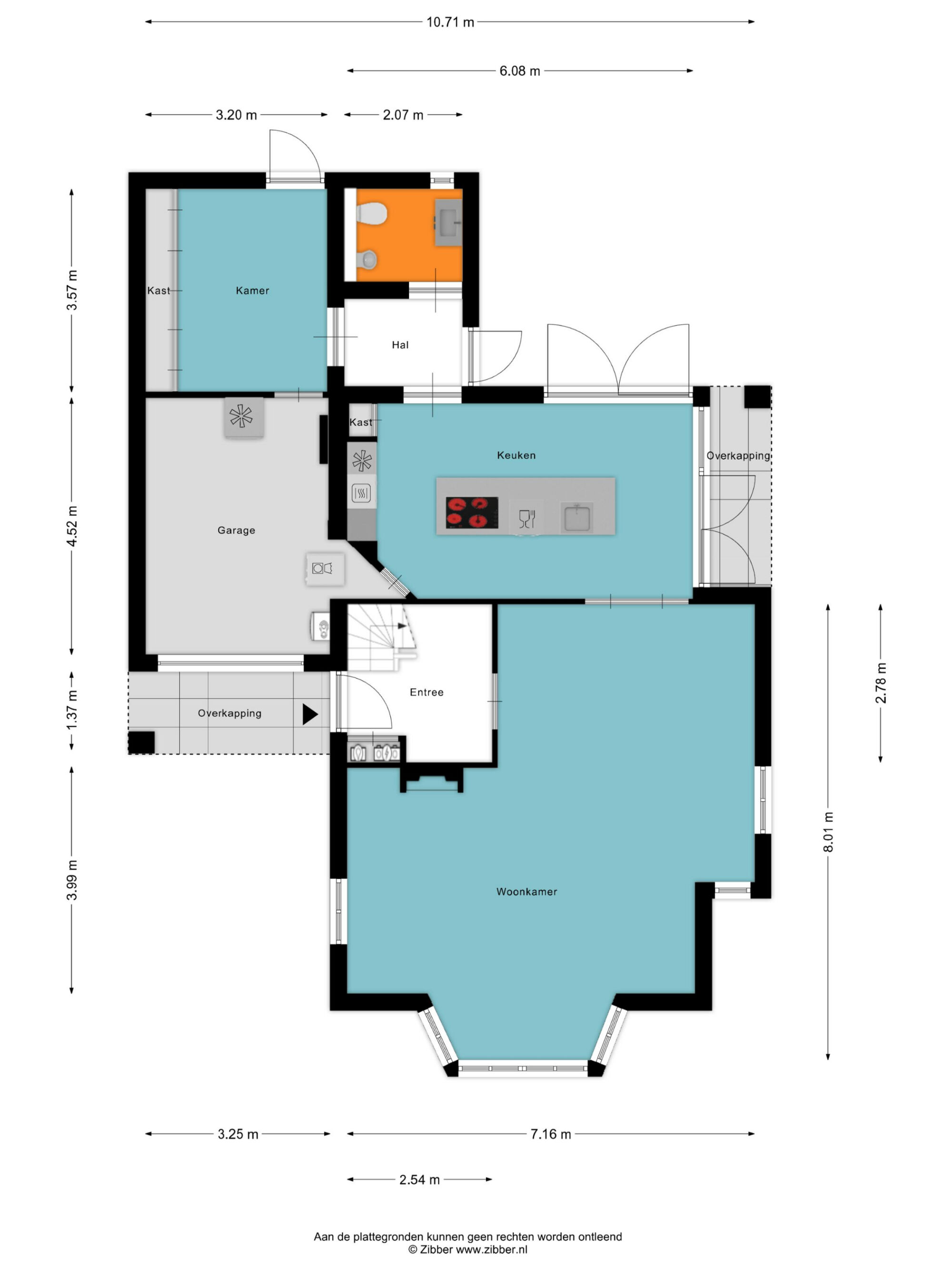 Via de ruime oprit aan de linkerzijde van de woning bereikt u de voordeur. Deze is voorzien van een kleine carport, waardoor u altijd droog binnenkomt. Bij binnenkomst treft u een royale entree, die toegang biedt tot de trapopgang naar de eerste verdieping, de woonkamer en de meterkast. Onder de trap is een praktische ruimte beschikbaar,
